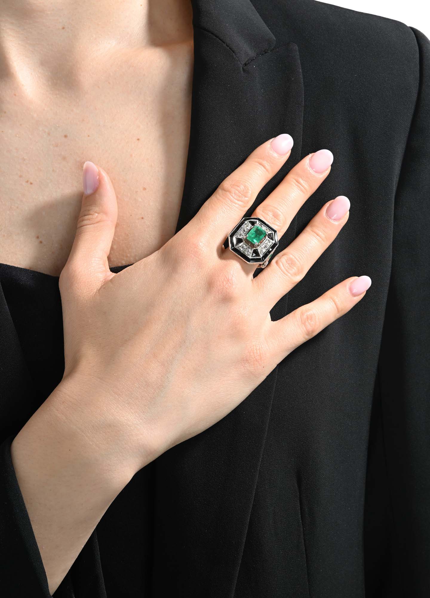 Anello in platino, smeraldi onice e brillanti Platino 950/000. Smeraldo in...