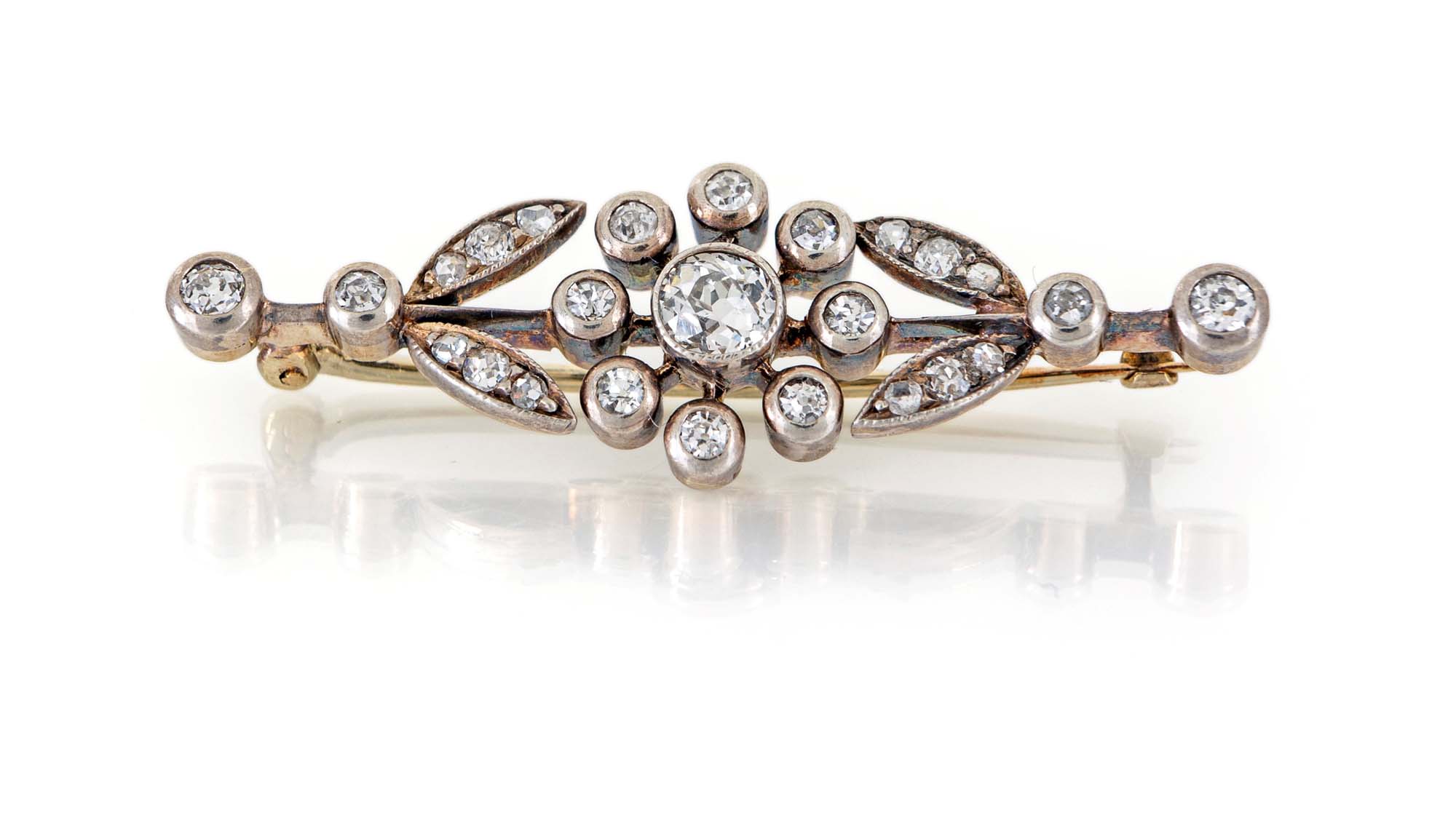 Spilla a barretta a fiore Oro bianco 750/000. Peso complessivo gr. 3,10....