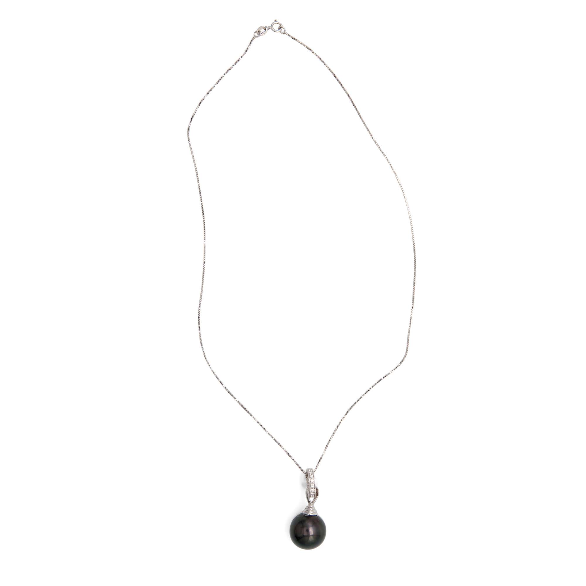 Pendente in oro, brillanti e perla nera. Oro bianco 750/000, brillanti, perla...