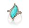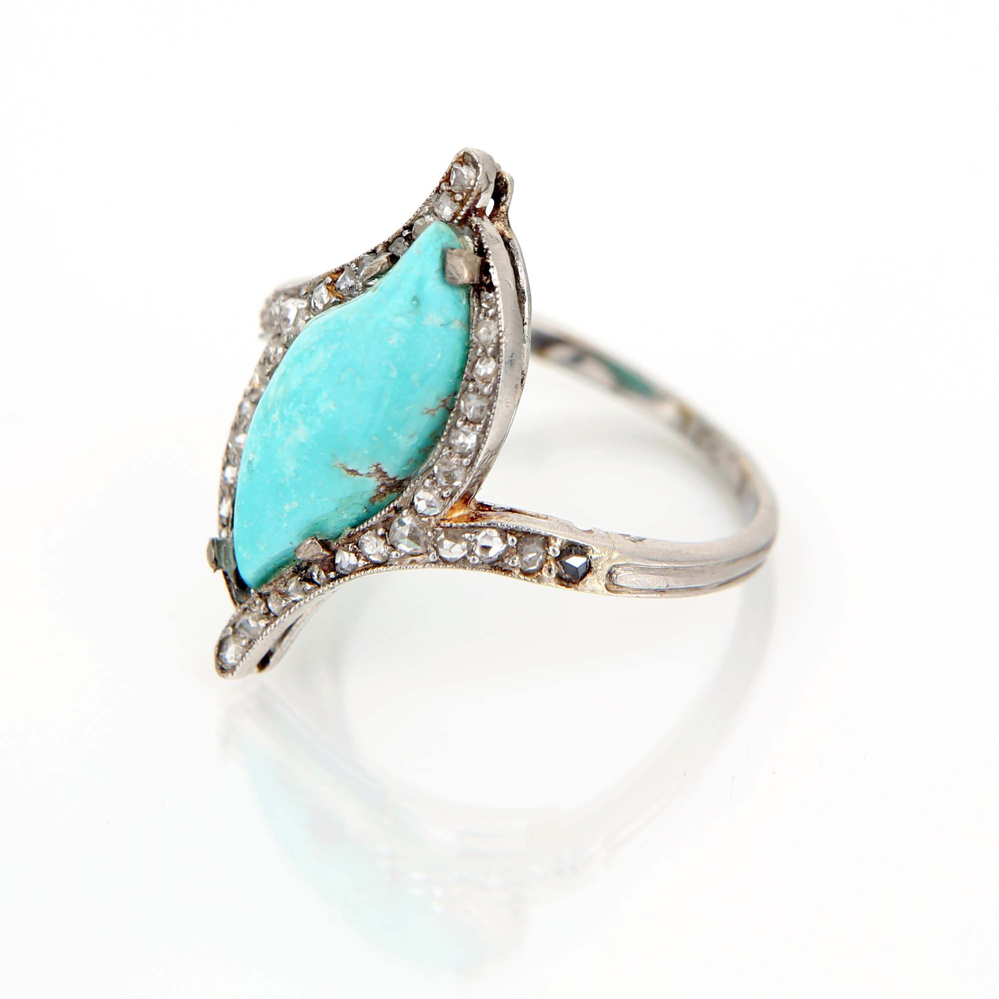 Anello in oro, turchese e diamanti Oro bianco 750/000. Peso complessivo gr. 4,10 Misura 17
