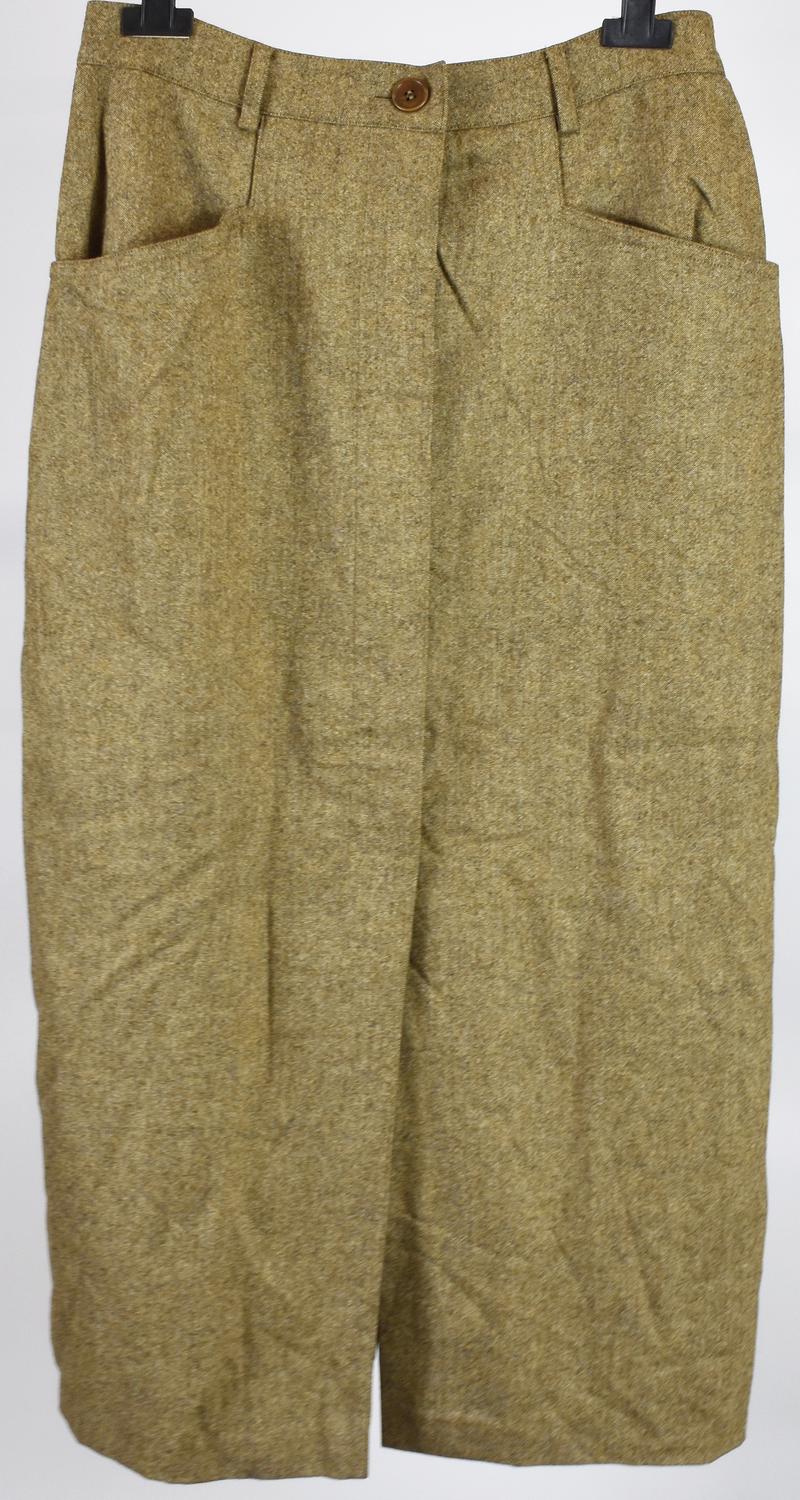 Gonna lunga in pura lana vergine. Bottoni lungo la parte frontale. Due tasche e passanti. Taglia 44. Prodotta in Italia. Perfettamente conservata.