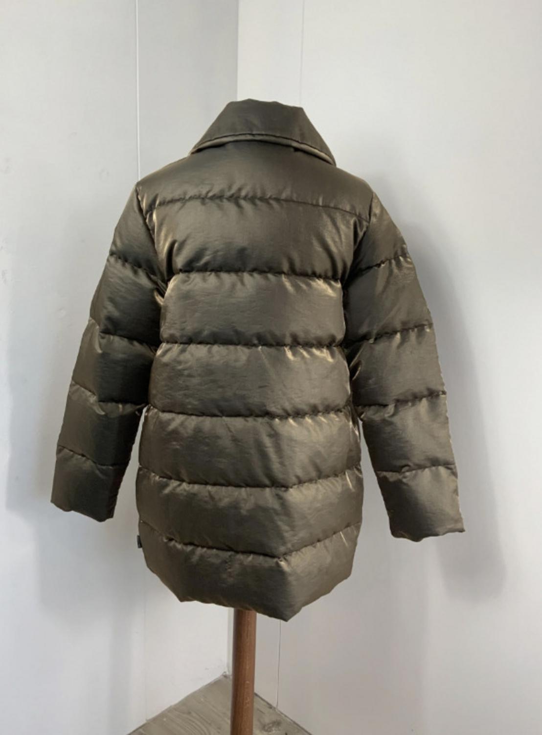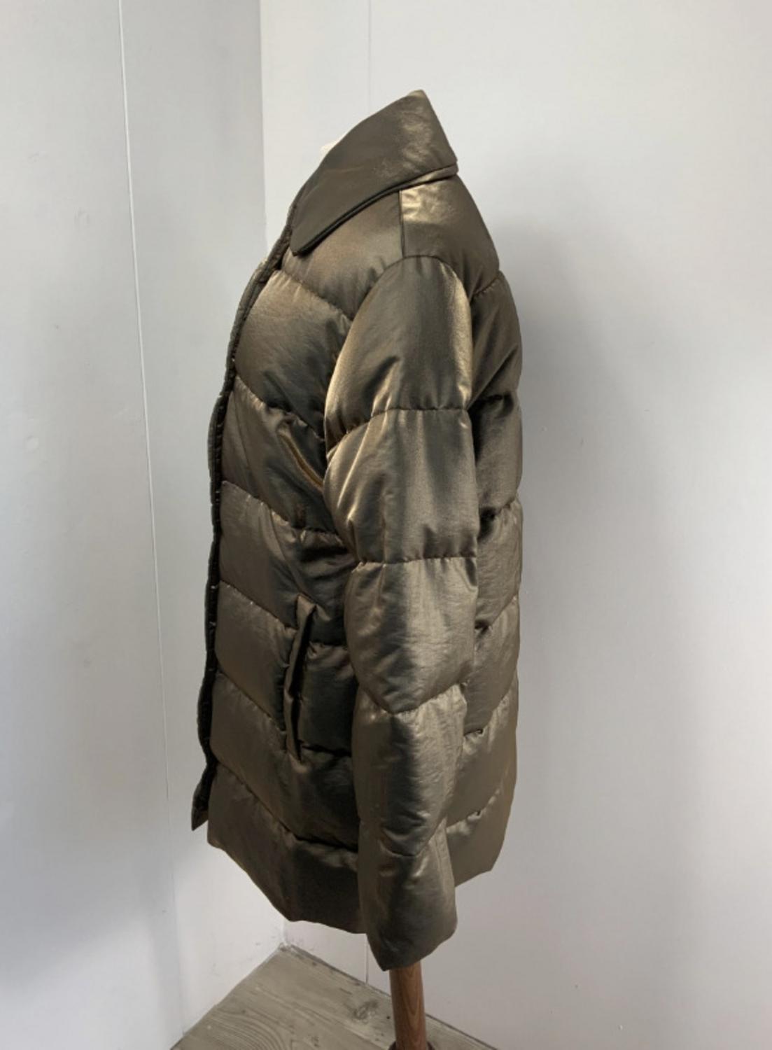 Piumino Moncler dorato, in poliestere e poliammide. Foderato in piuma d'oca.