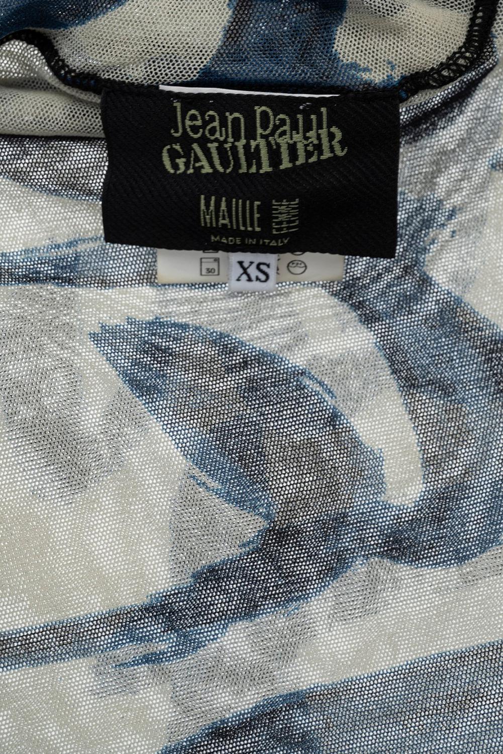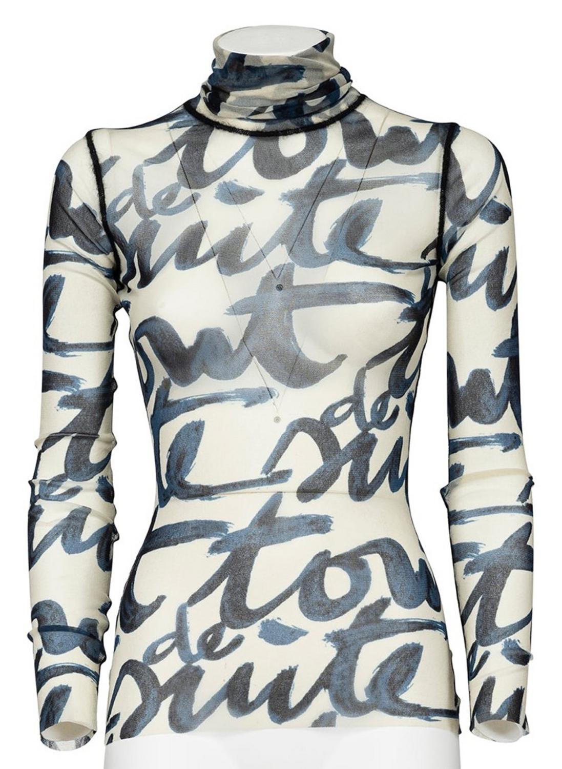 Jean Paul Gaultier ICONIC LONG SLEEVE TURTLENECK PRINTED MESH SHEER TOP...