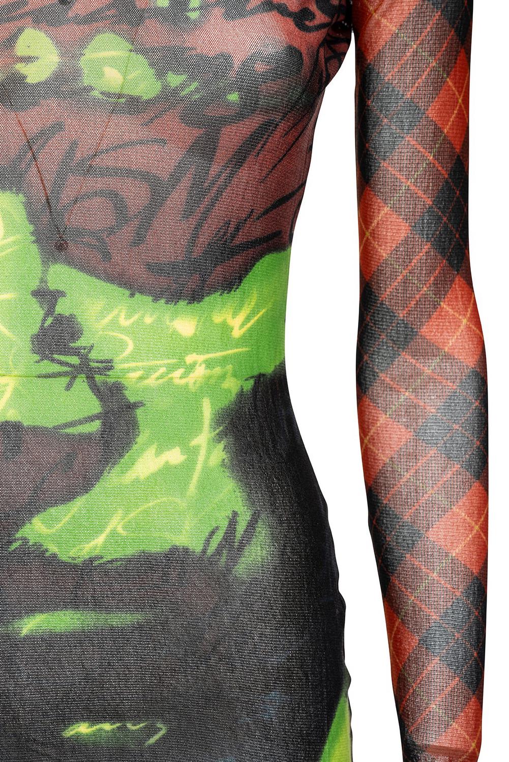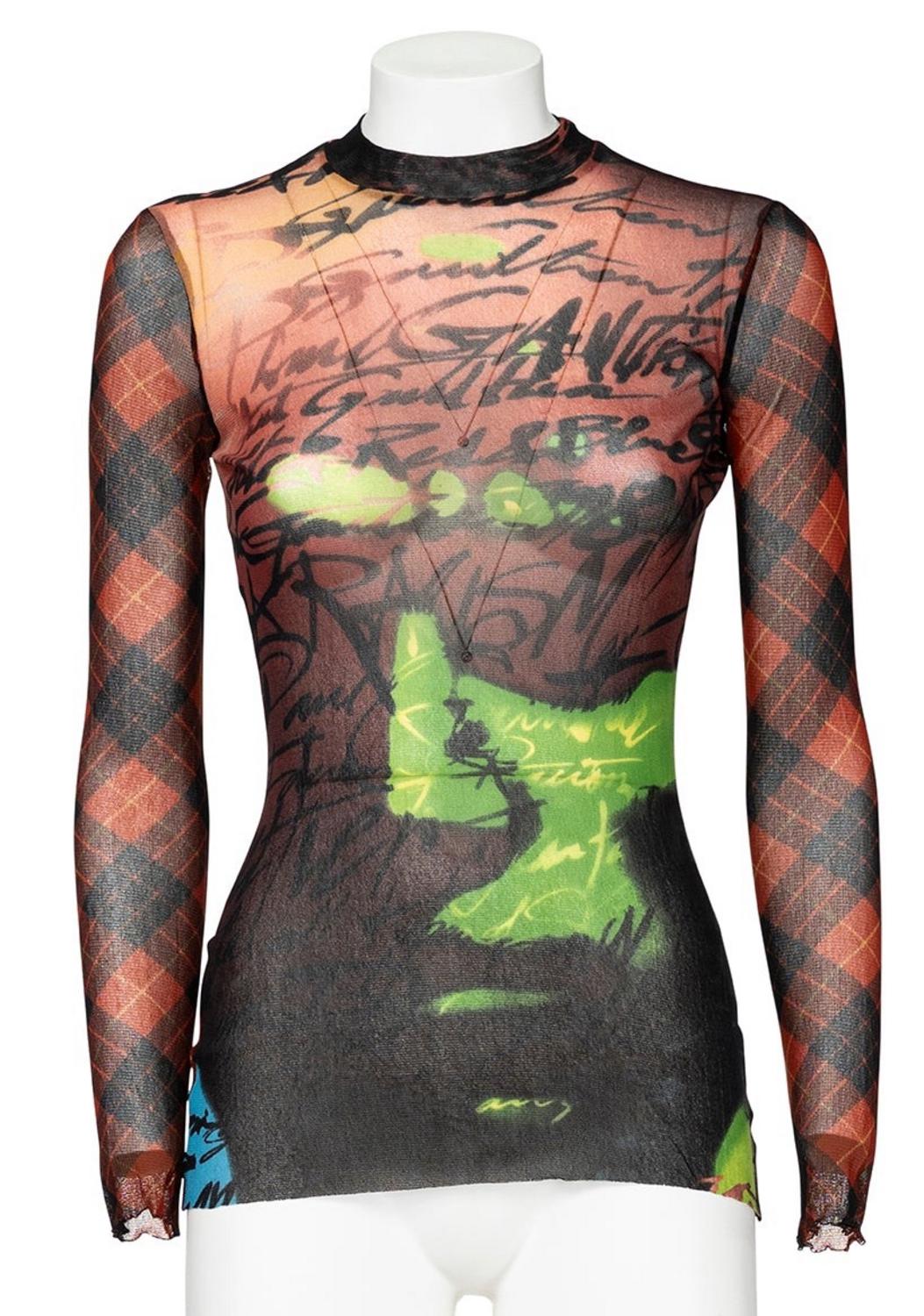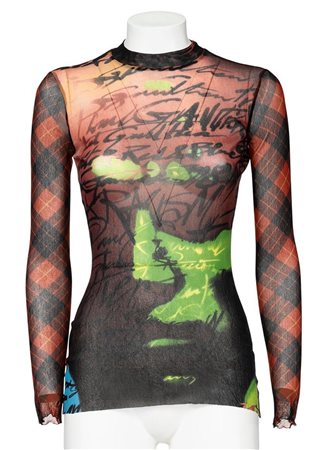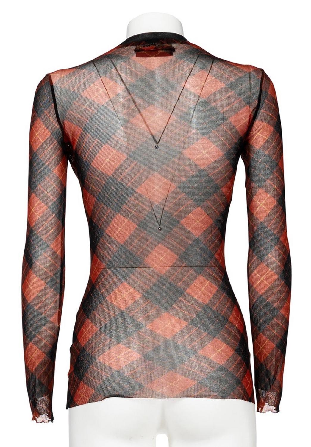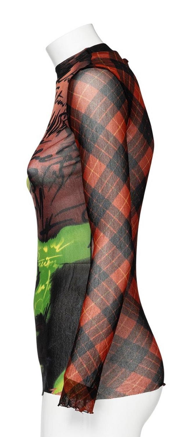 Jean Paul Gaultier ICONIC CHECKED LONG SLEEVE PRINTED MESH TOP DESCRIPTION:...