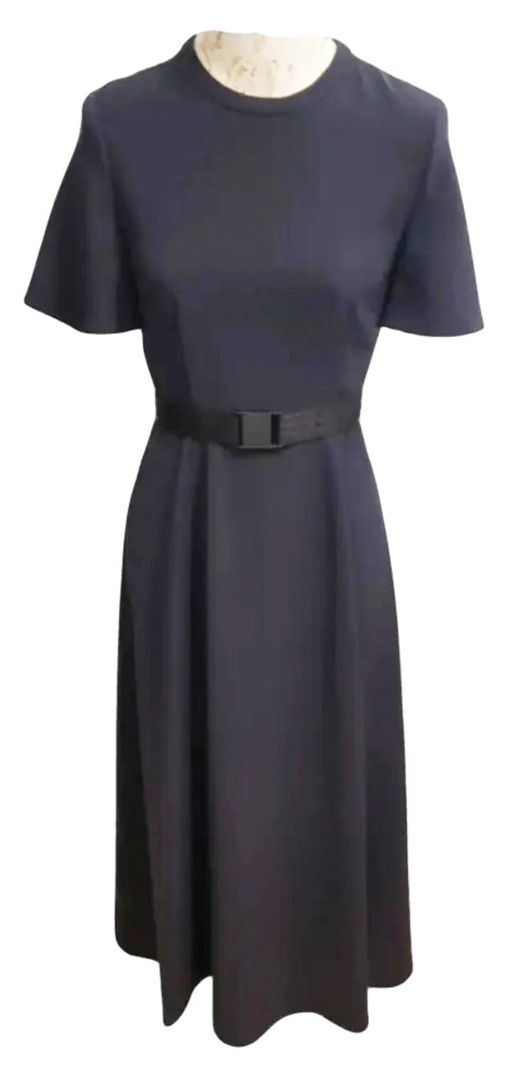 Abito Emporio Armani in cady elasticizzato con cintura abbinata anch’essa elasticizzata, e maniche a mezza campana. Spalle 38 cm, lunghezza 124 cm. Taglia 40 IT. 100x100 poliestere. Prodotto in Cina. Eccellente, ancora con etichetta.