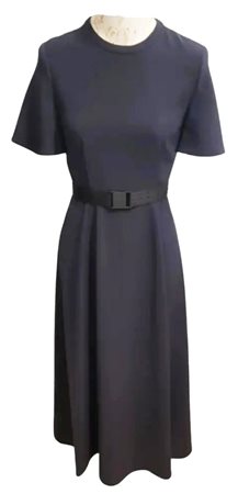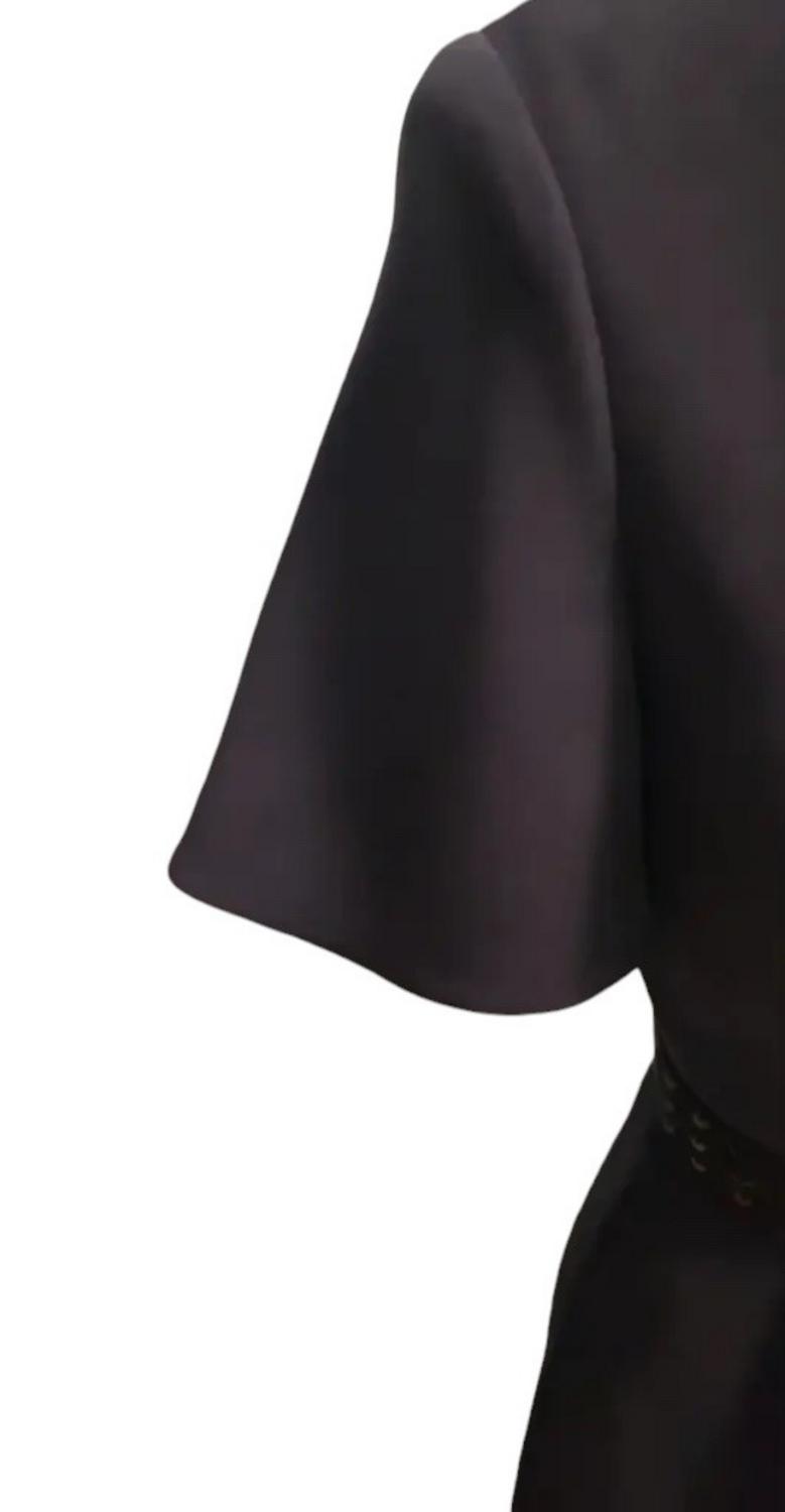 Emporio Armani dress in stretch cady fabric with matching elasticized belt and half bell sleeves. Shoulders: 38 cm, length: 124 cm. Size 40 IT. 100% polyester. Made in China. Excellent condition, still with tag