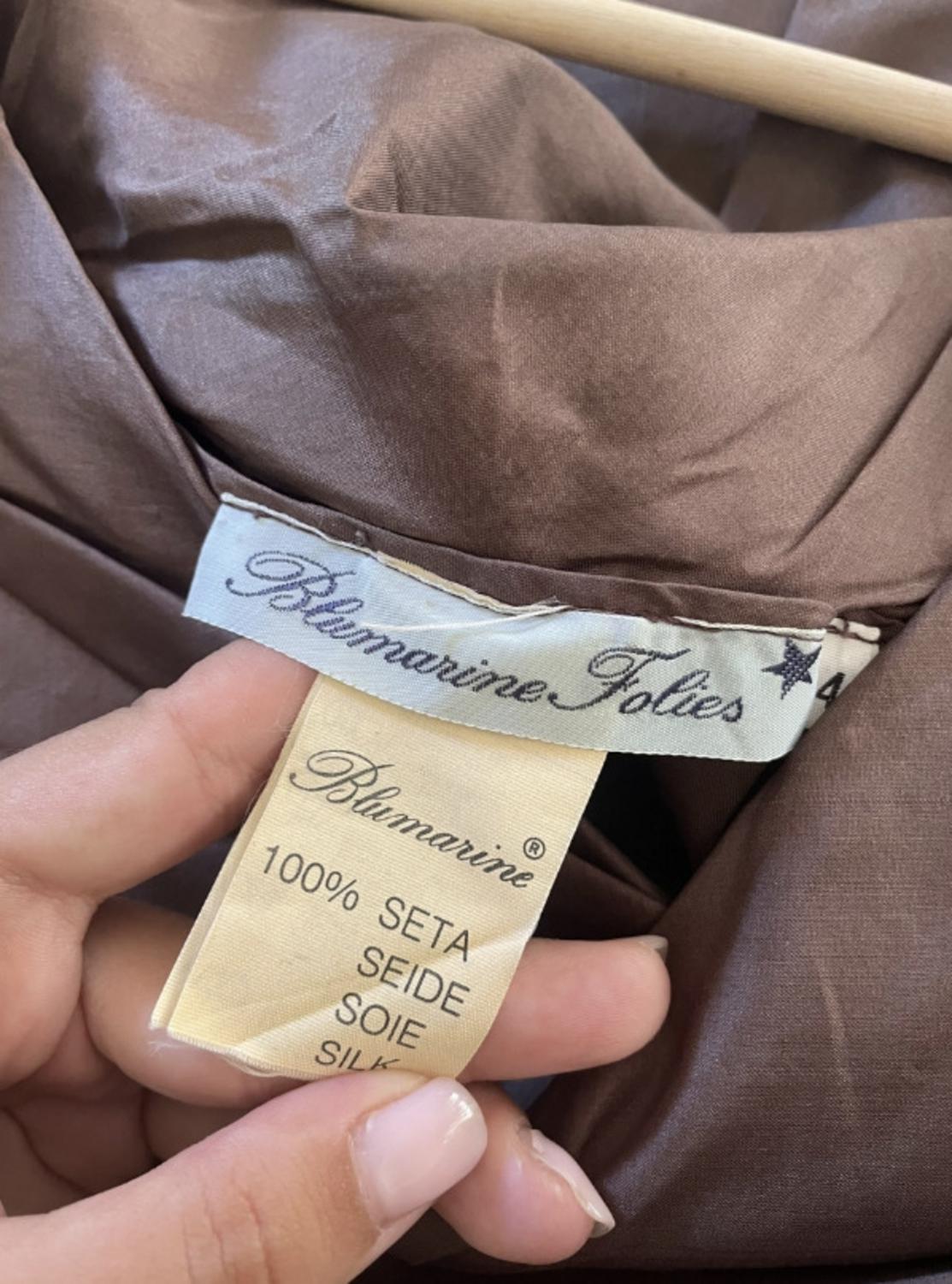 Blumarine Folies dress in 100% silk, 50s style,flowers on the shoulders. Side closure with zip and button. Size indicated 44 but runs smaller. It shows some signs of use.