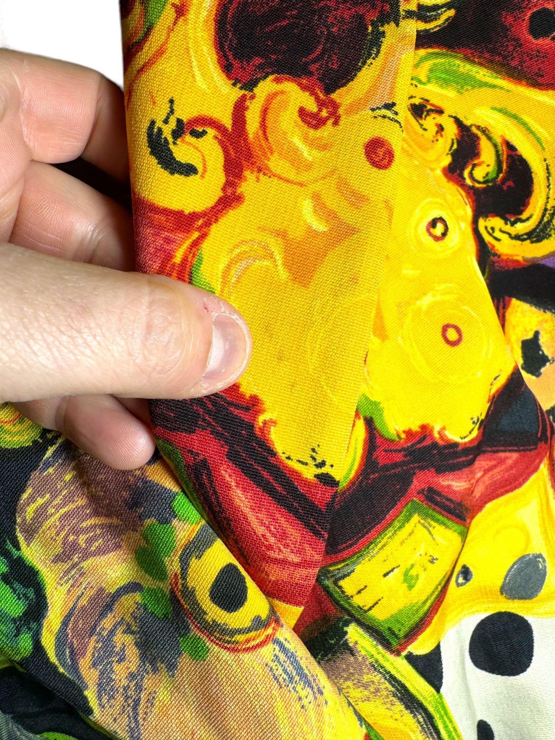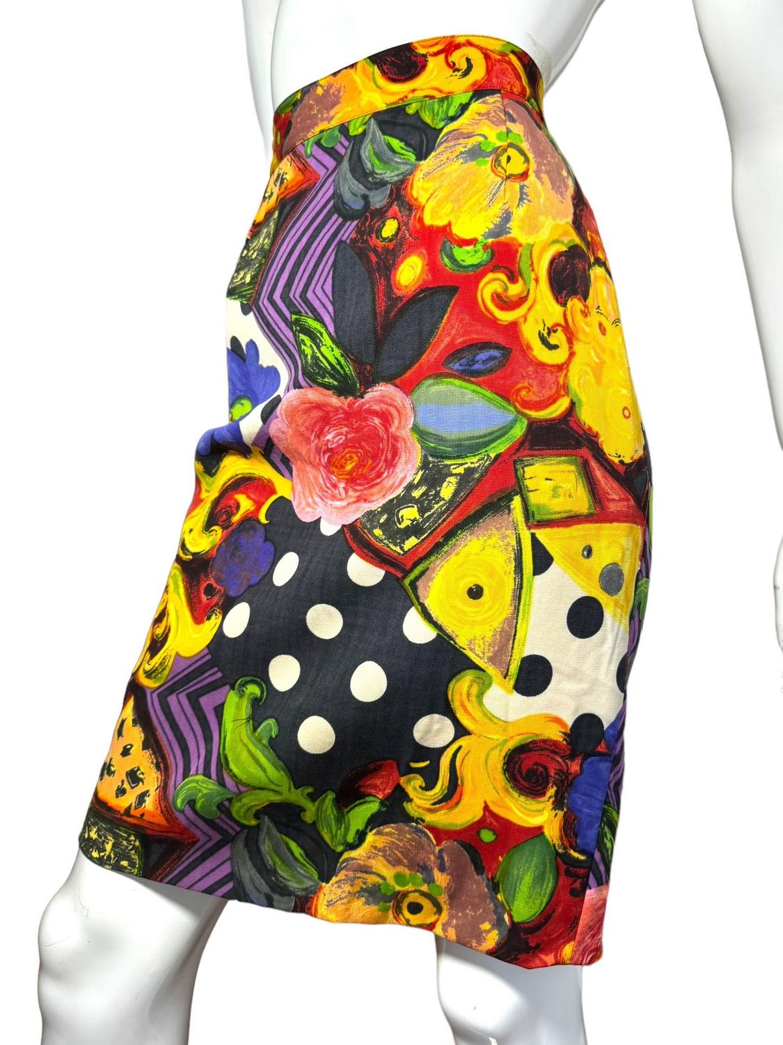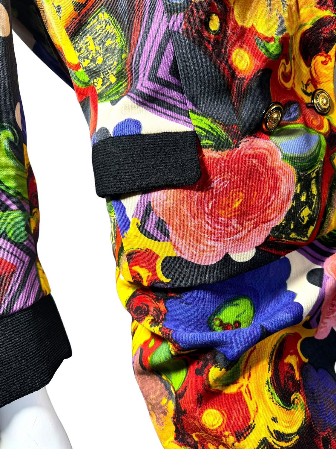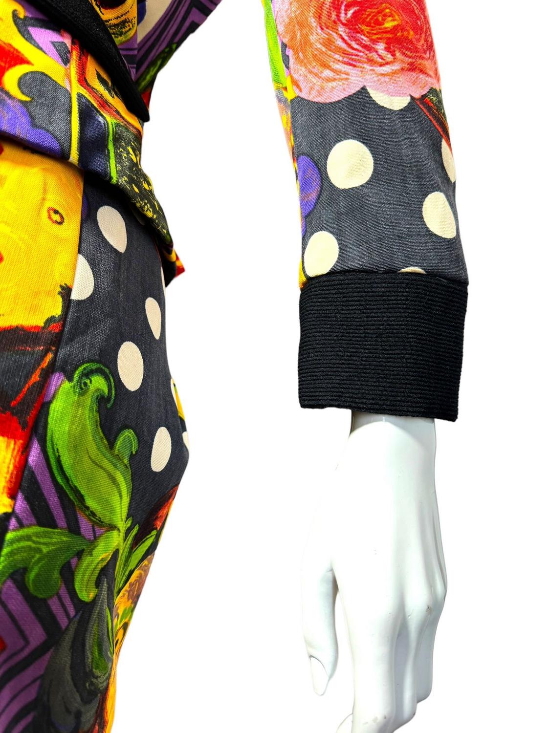 Composto da giacca a doppiopetto con bottoni gioiello e gonna. Ha una leggera macchiolina sul davanti, impercettibile, vedi ultima foto. Stampa su tessuto 100% lana. Vintage anni 90s.
