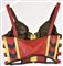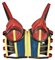 Iconic leather corset with fabric inserts, signed by the designer on the right bust. Front zip closure. Size 38. Some stitching defects on the shoulder straps at the back. Well-preserved.