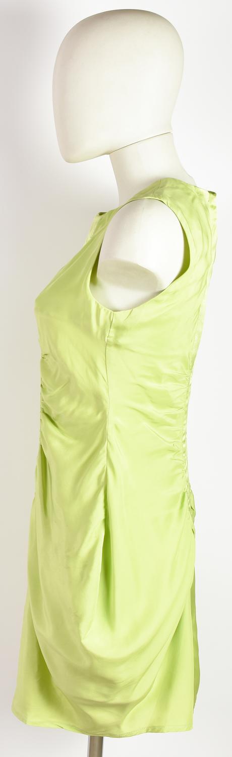 Green sheath dress with detail on the hips. Back zipper. Size and composition label missing. Fits a 40 IT. Well preserved.