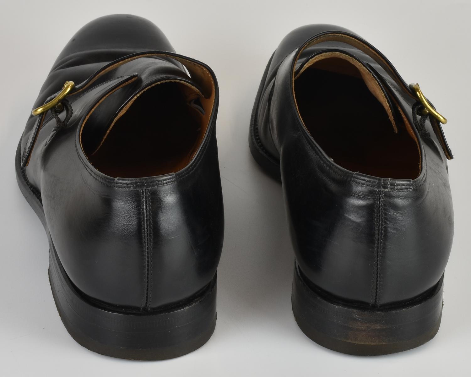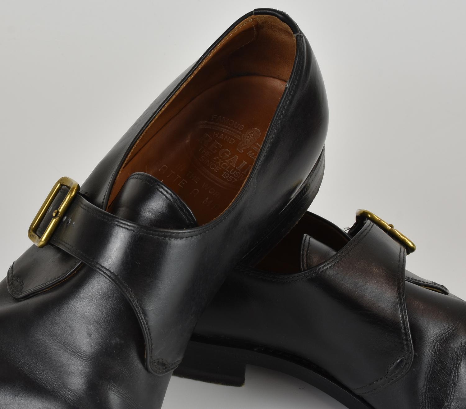 Black leather monk strap shoes, handmade. Size 10. Signs of use but in good overall condition. Well preserved.