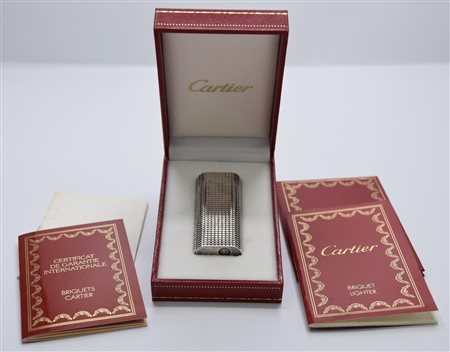 Accendino Cartier placcato argento. Numero di serie: E 62308. Presentato con scatola originale, libretti e garanzia. Usato ma in ottime condizioni.