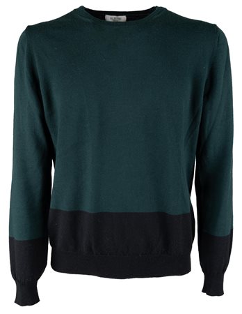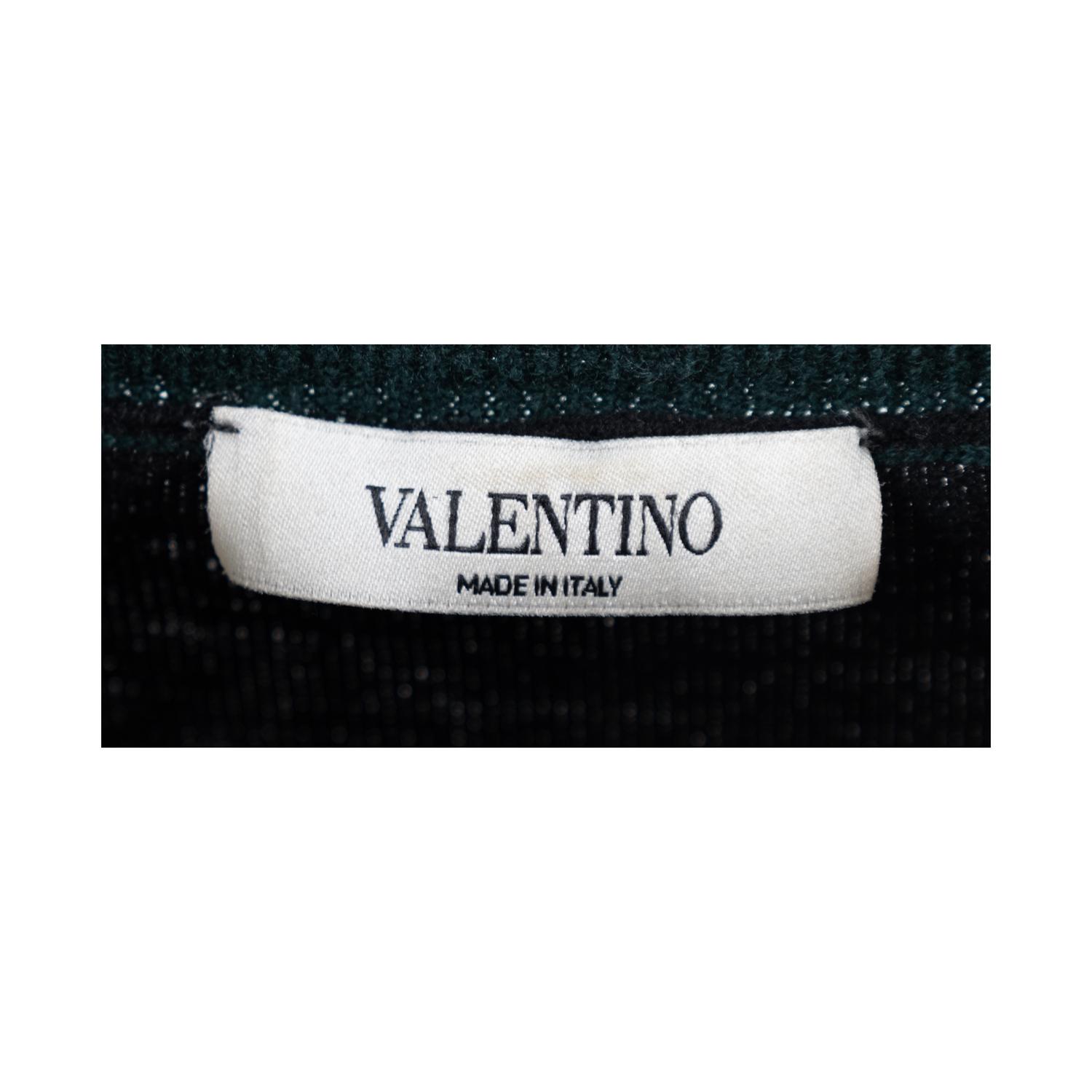 This Valentino sweater is perfect for cold winter days. Crafted from luxuriously soft wool, its long sleeves and round neck provide optimal warmth. Its bold color-blocking of black at the hem and back adds a stylish contrast with green. Size XL. Excellent condition.