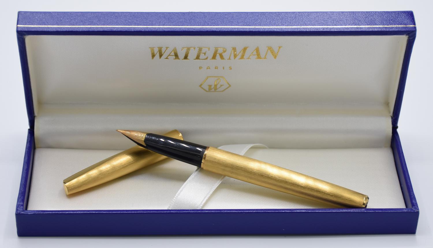 Waterman FOUNTAIN PEN DESCRIPTION: Gold-plated fountain pen with 18K gold...