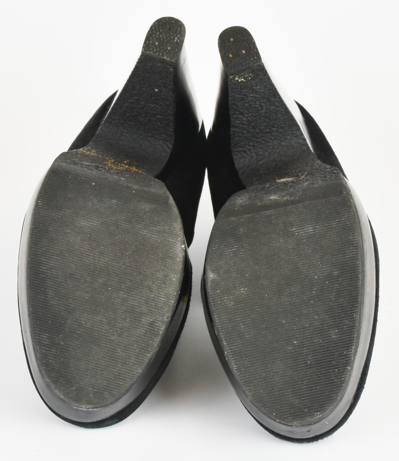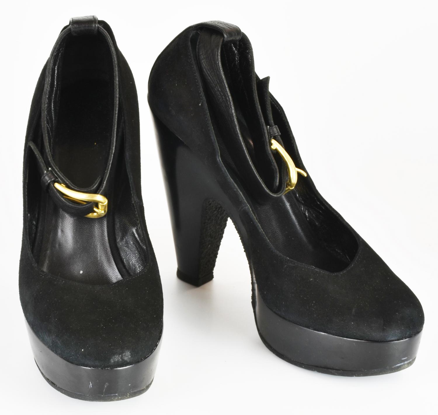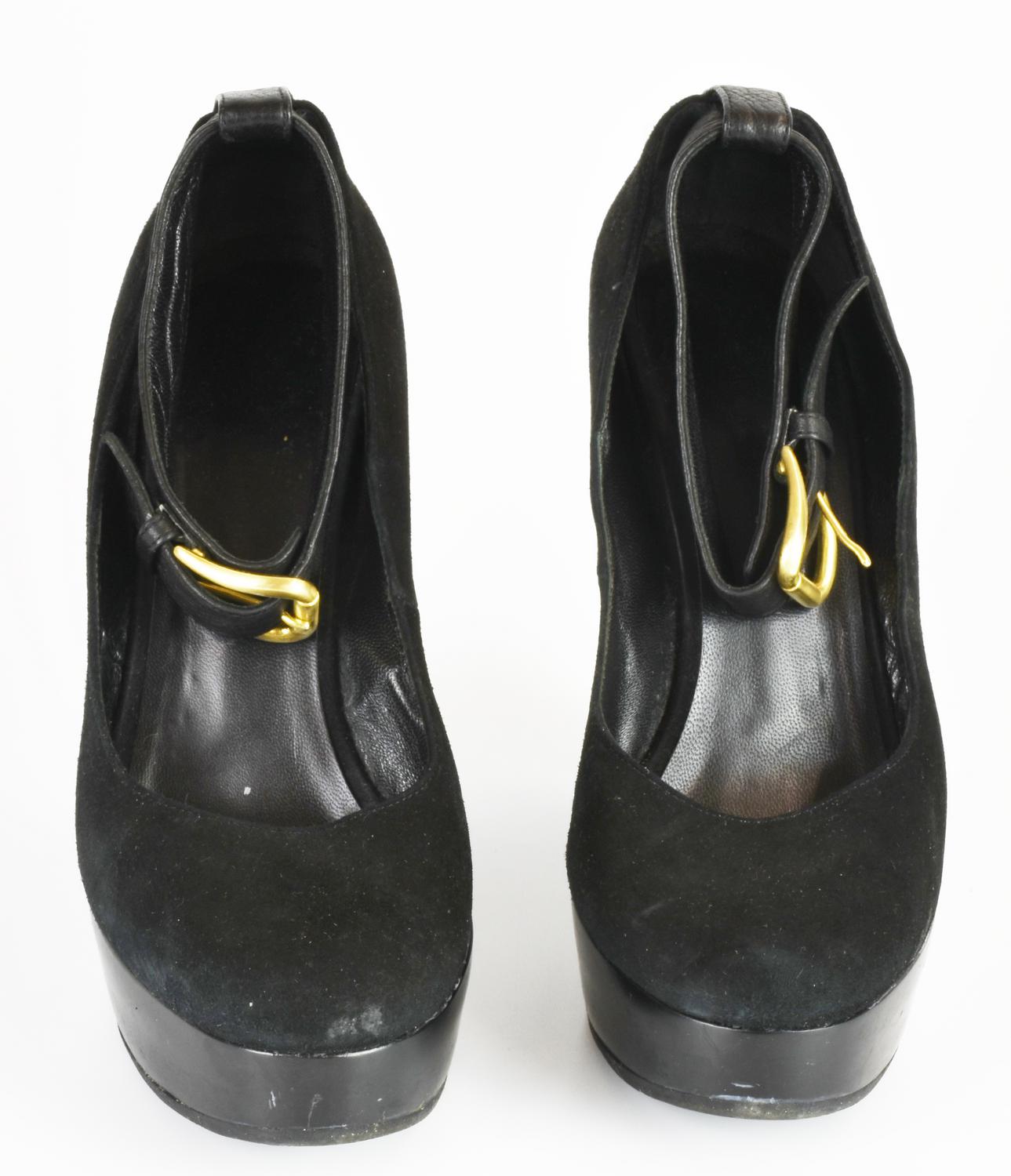 Suede pumps with leather ankle strap. Heel height of 13.5 cm and a 3.5 cm platform. Size 40. Made in Italy. Some signs of wear. Well preserved.