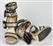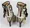 Sandali in pitone e canvas con tacco in materiale plastico. Cerniera sul tallone e chiusure con fibbie di foggia differente. Tacco di 12 cm. Taglia 36,5 IT. Prodotti in Italia. Perfettamente conservati.