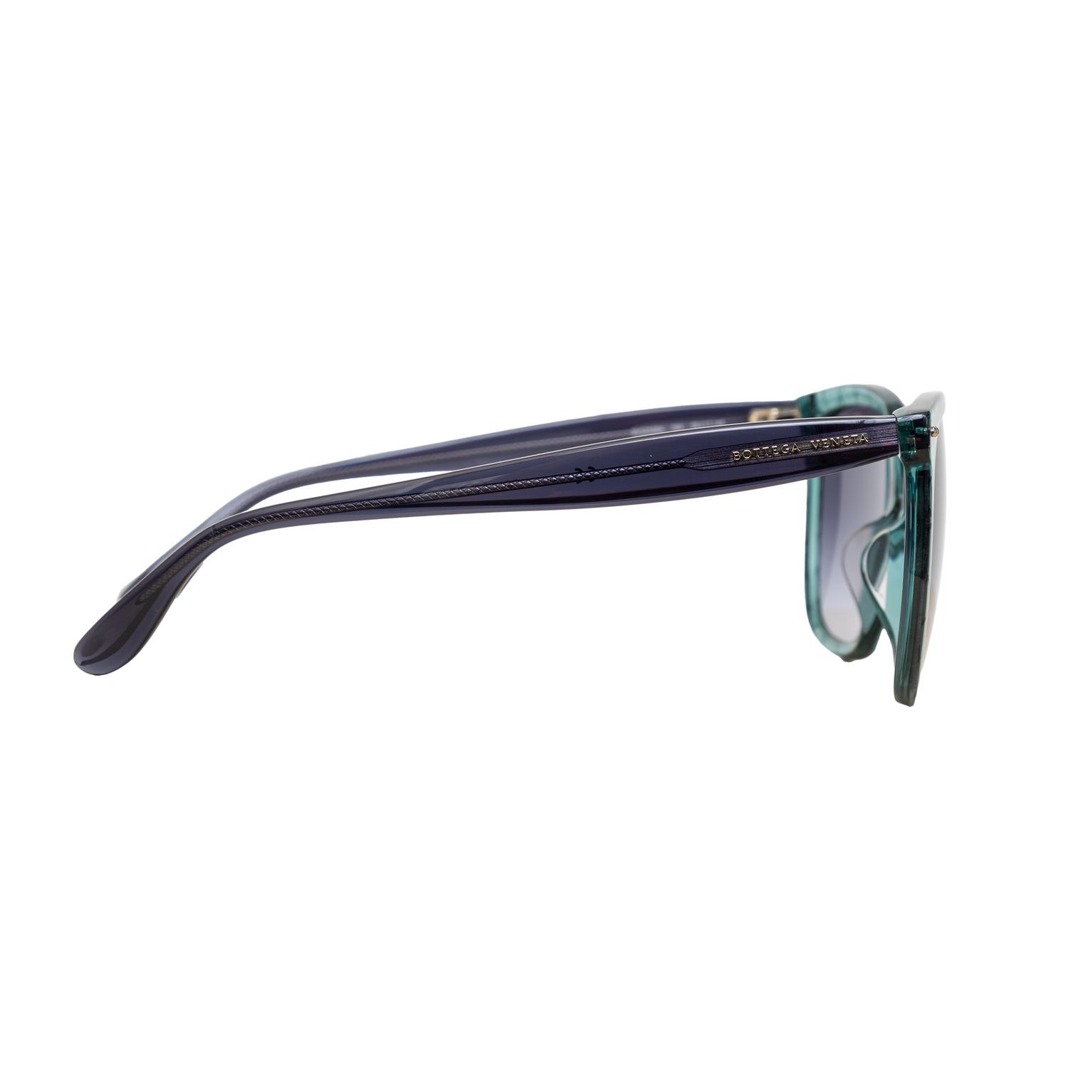 These gradient sunglasses by Bottega Veneta feature a romantic and feminine interpretation of the iconic Intrecciato layer on the acetate frame. The tinted lens with the green frame is accentuated with the engraved logo on the side of the temple. Inclusion: Case, box. Excellent.