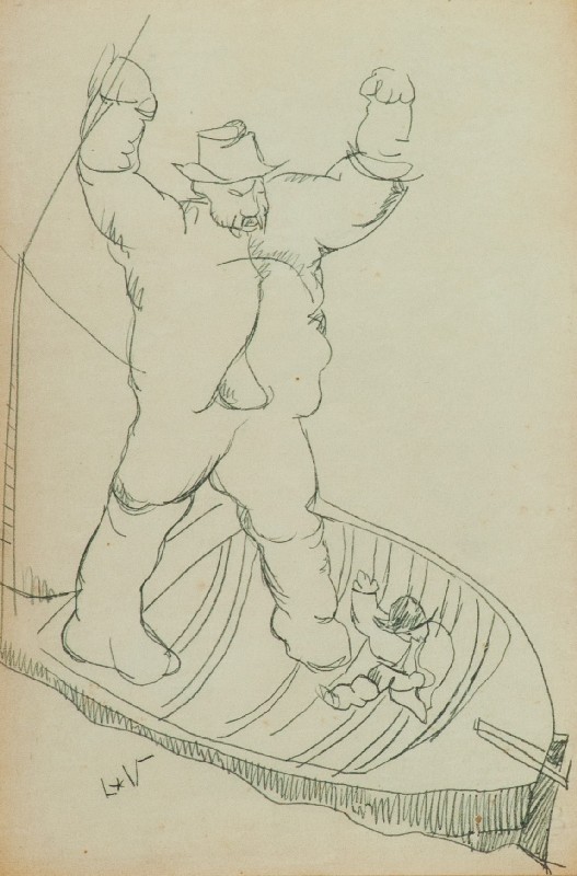 Lorenzo Viani (Viareggio 1882 - Ostia 1936) IL BALENA Biro su carta, cm. 30x20 La carta presenta lievi ingiallimenti. Siglato in basso a sinistra.