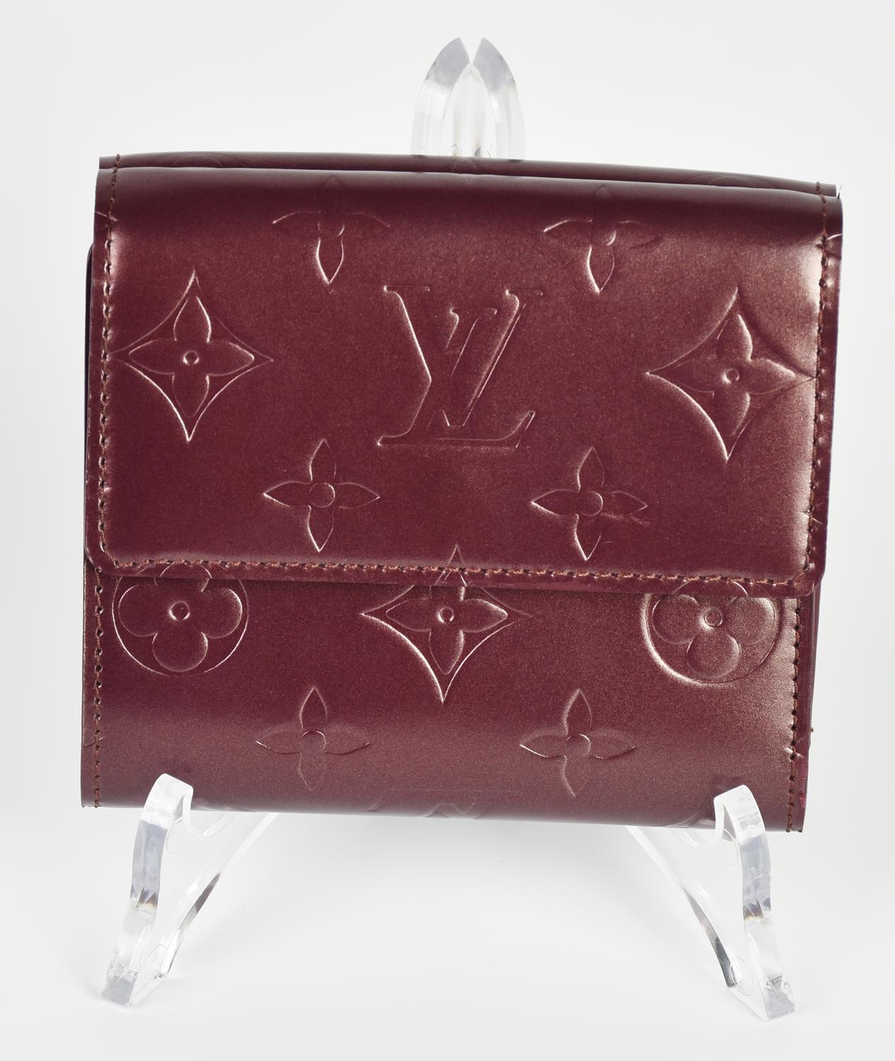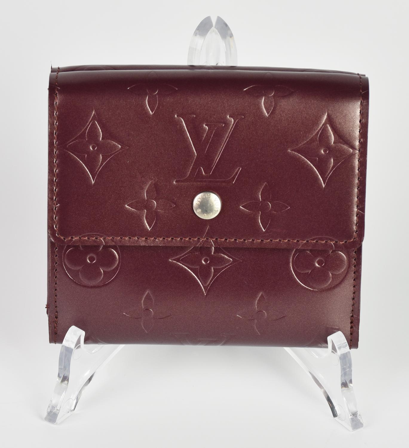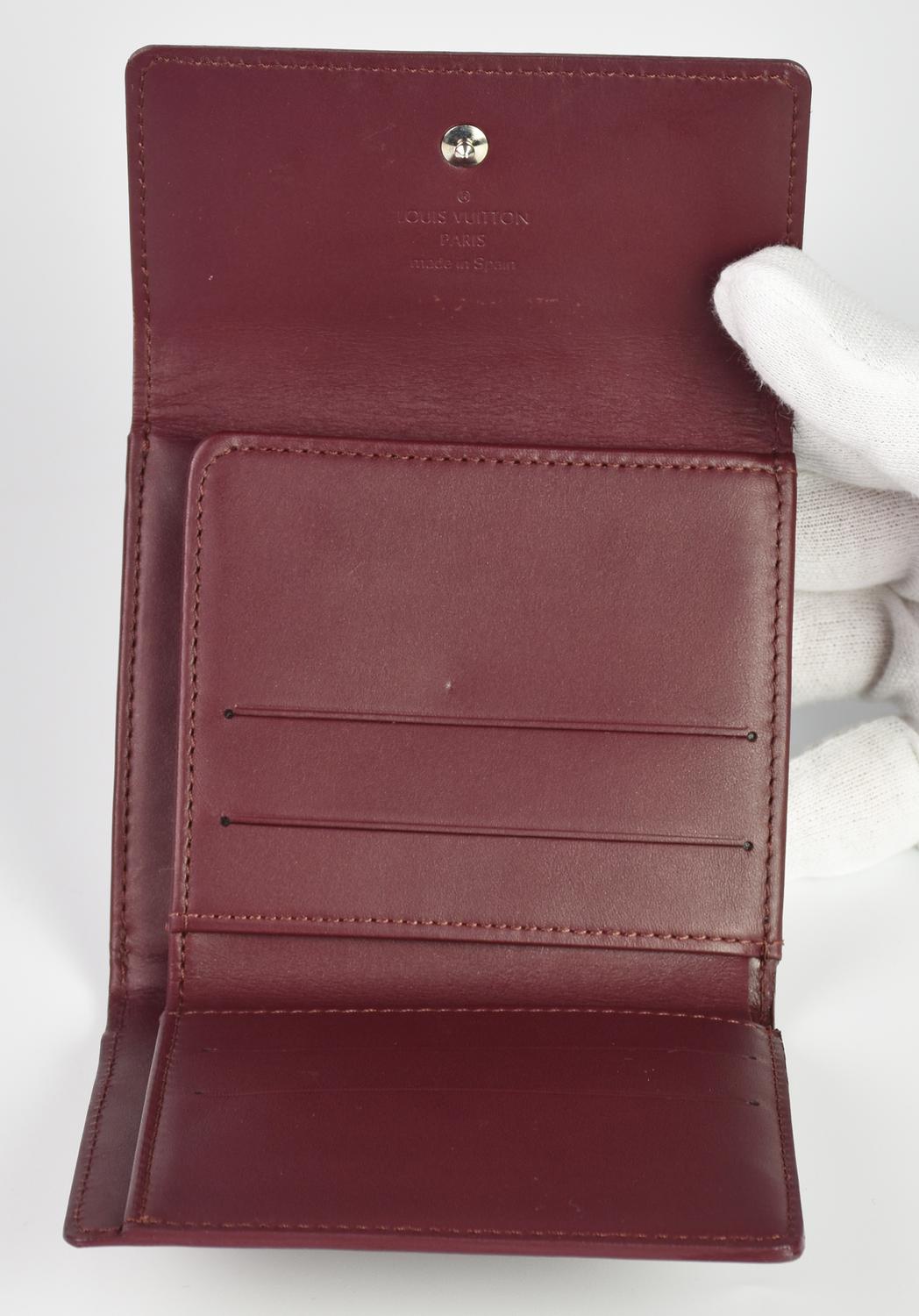Louis Vuitton BURGUNDY MONOGRAM MAT WALLET BI-FOLD DESCRIPTION: Bifold wallet...