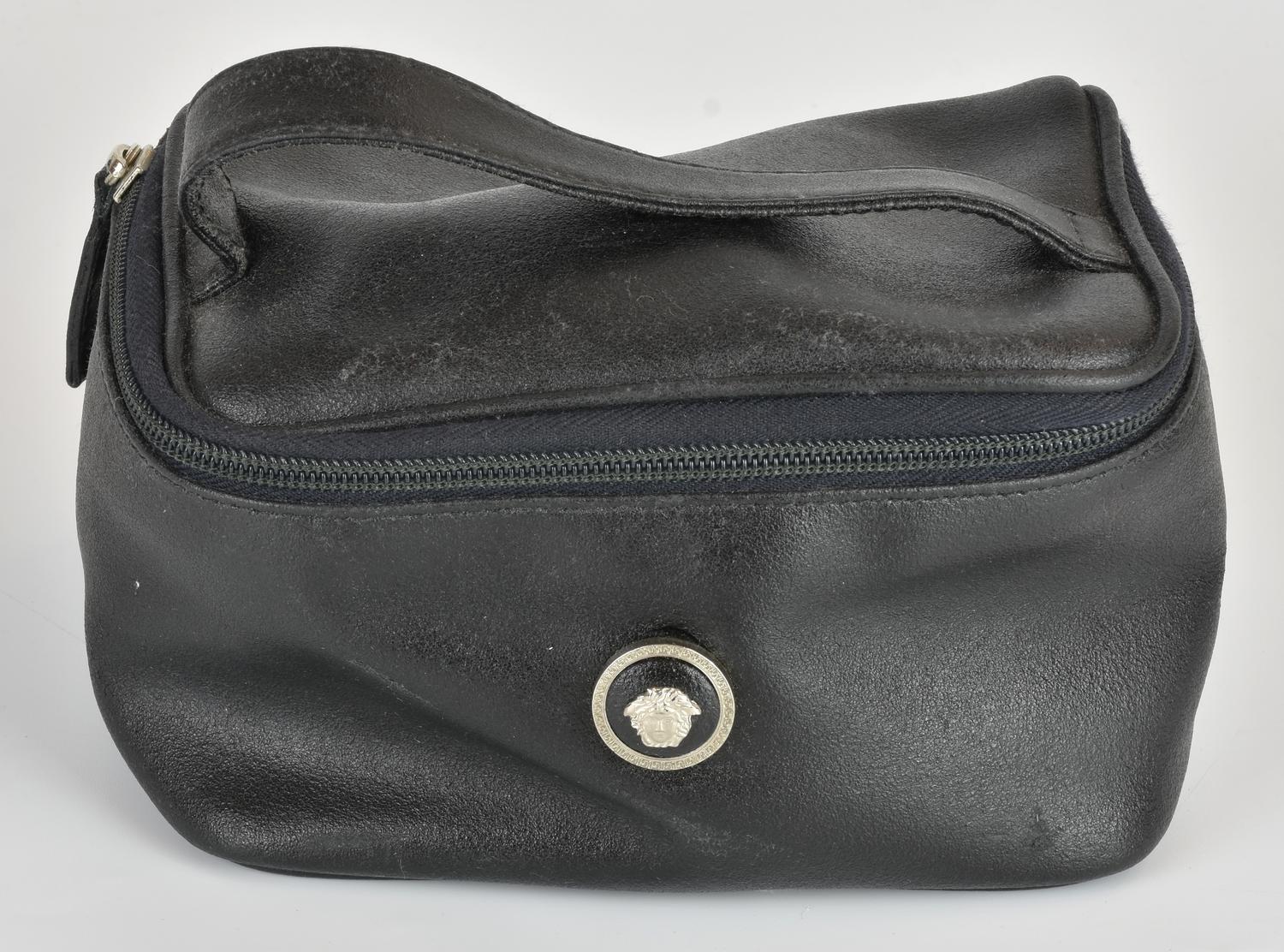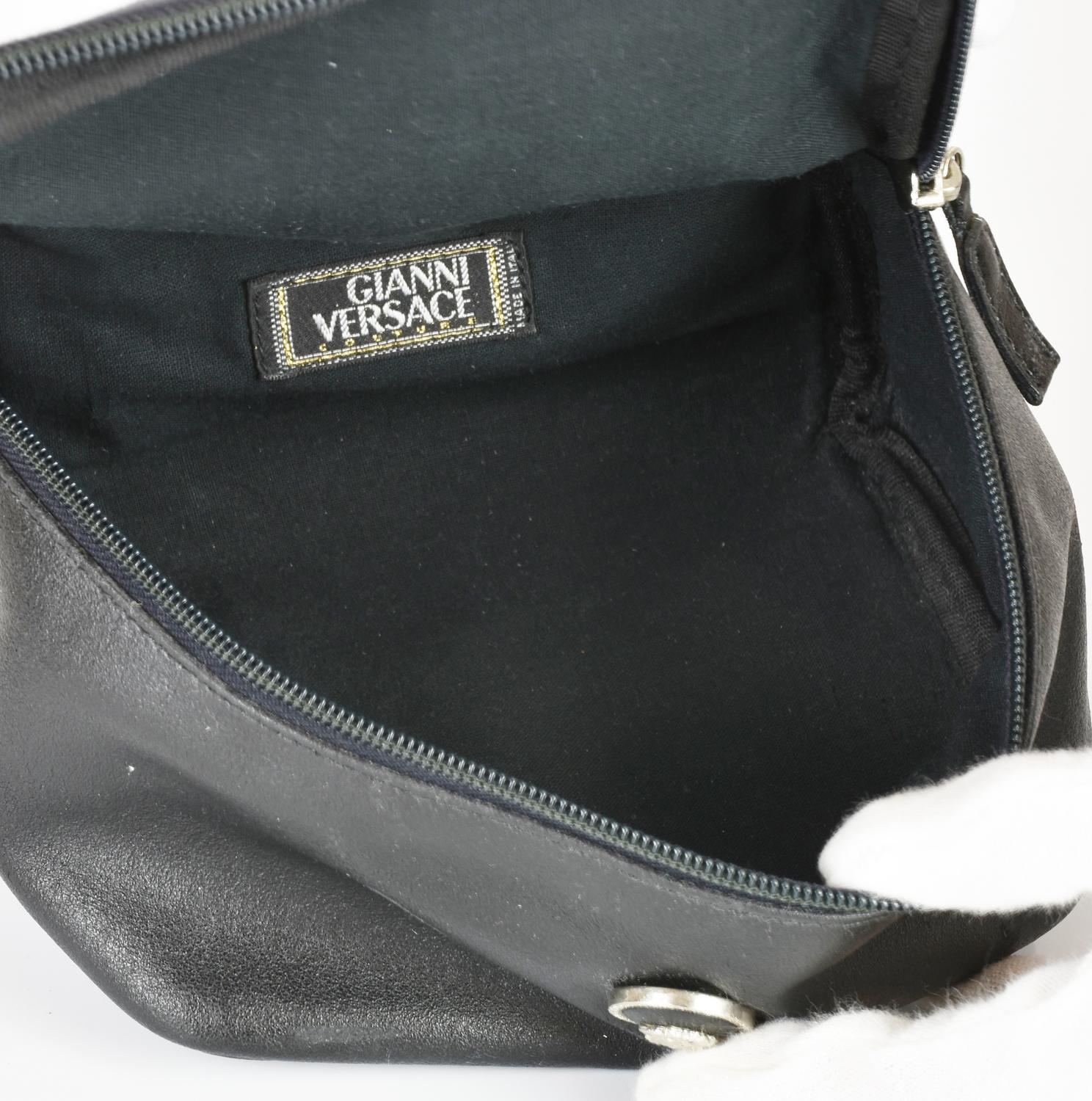 GIANNI VERSACE LEATHER TROUSSE DESCRIPTION: Black leather pouch with a metal...