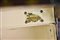 Vintage wooden travel trunk, covered in monogram canvas with leather trim and brass hardware. Still retains the ‘ribbon cage’, a movable container with a wooden frame on which a canvas ribbon is stretched. Dimensions: 49,50x23x49 cm. Features a label from the historic store at 70, Champs-Elysées. Dated 1940 - 1950. Made in France. Shows defects and signs of age, but overall condition is good. Well preserved.