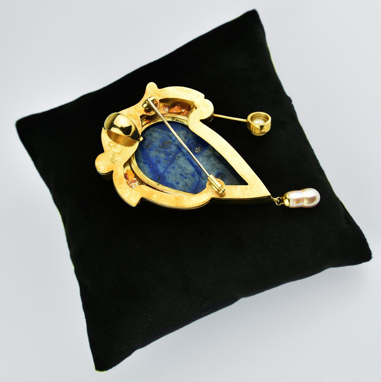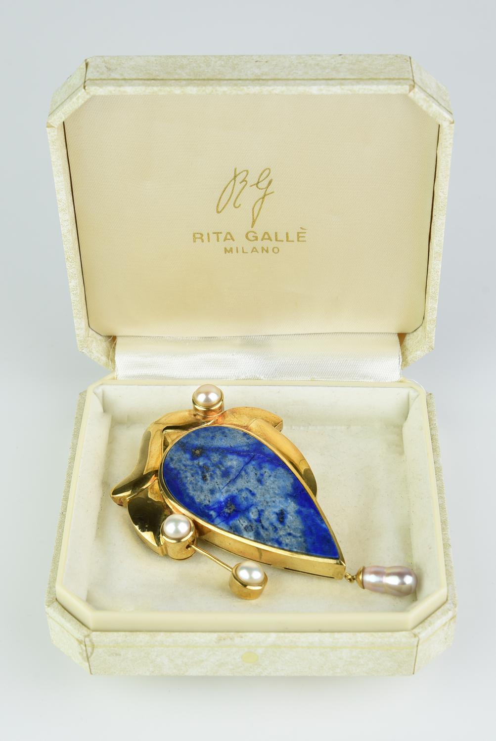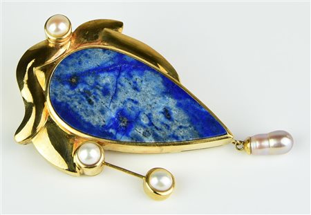 (Caltanissetta 1931 – Oaxaca, Messico 2009) - SPILLA - CIONDOLO IN ORO CON PERLE E LAPISLAZULI, ANNI '90 - 2000
