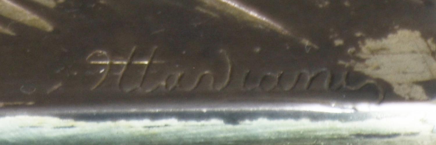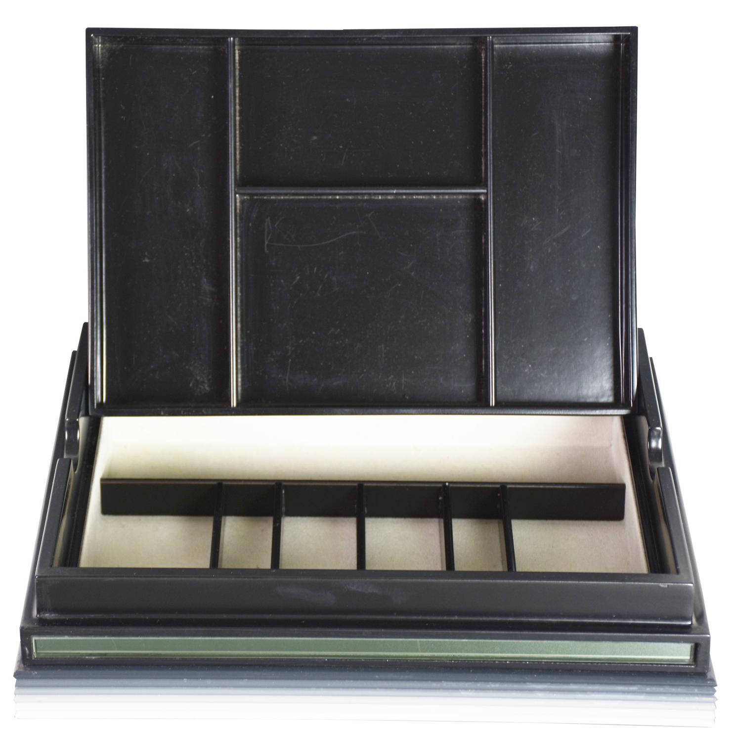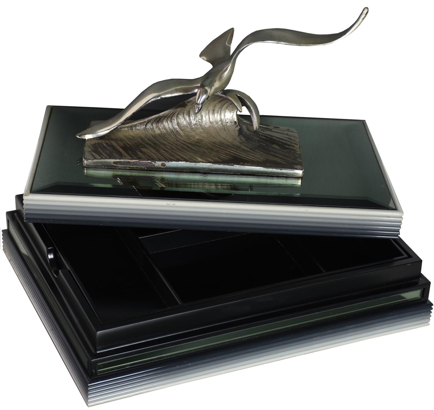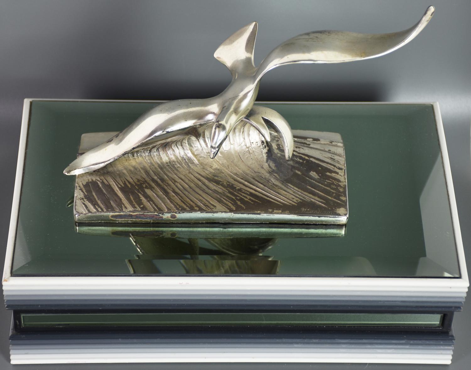 particolare scatola suddivisa internamente in scomparti, completata da coperchio con scultura di gabbiano in argento