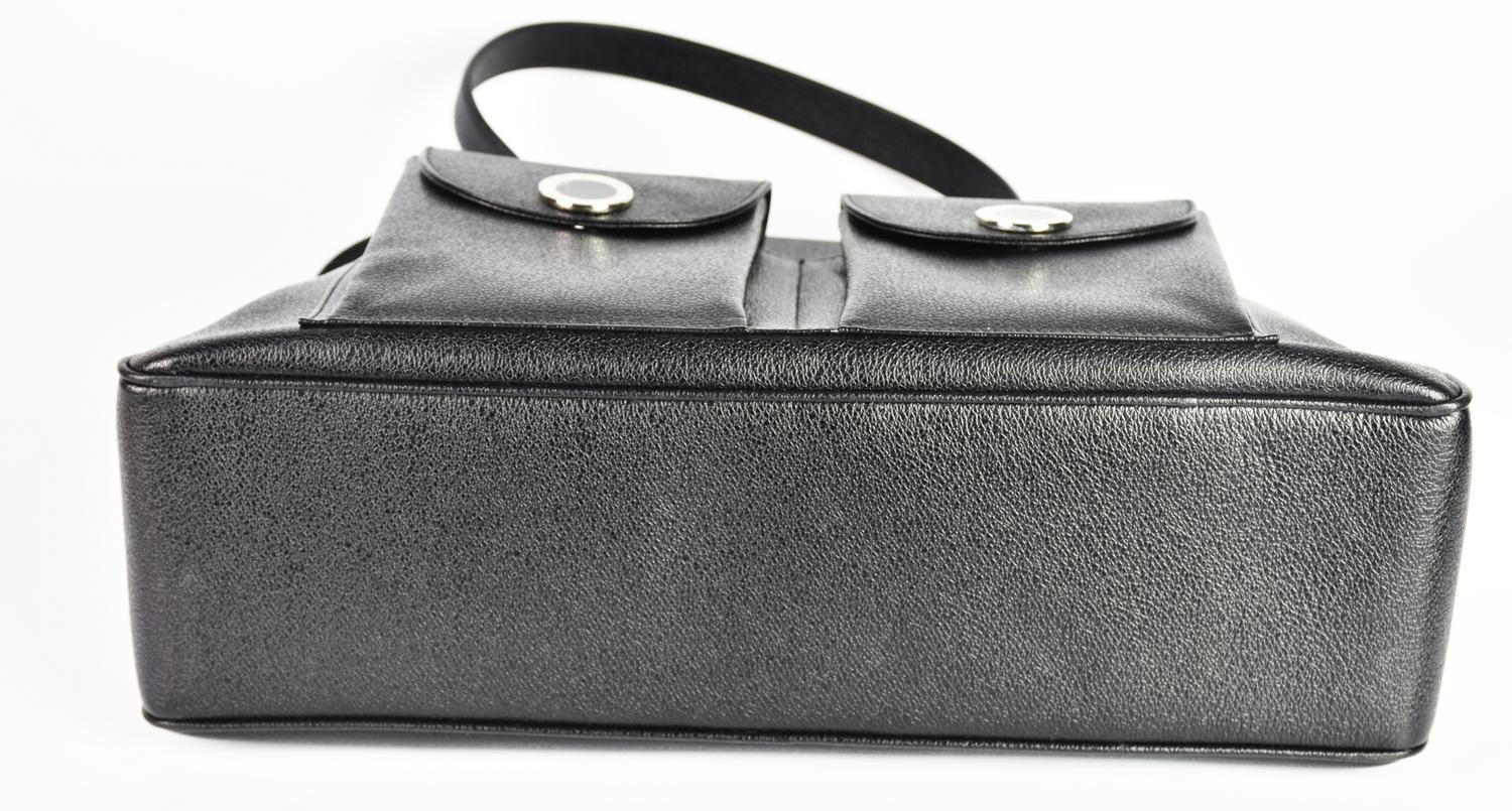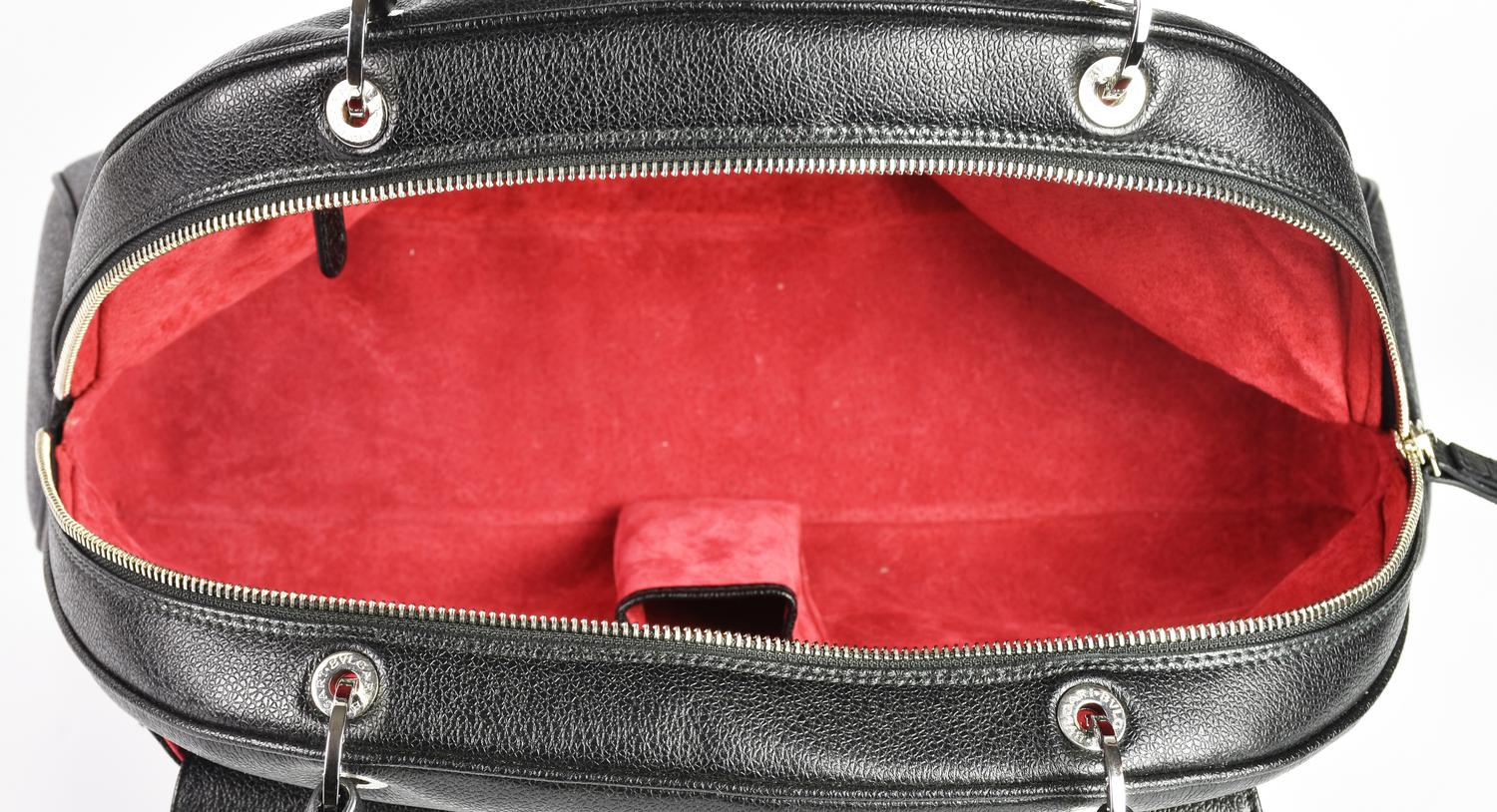Bulgari BLACK LEATHER HANDBAG DESCRIPTION: Black leather handbag with two...