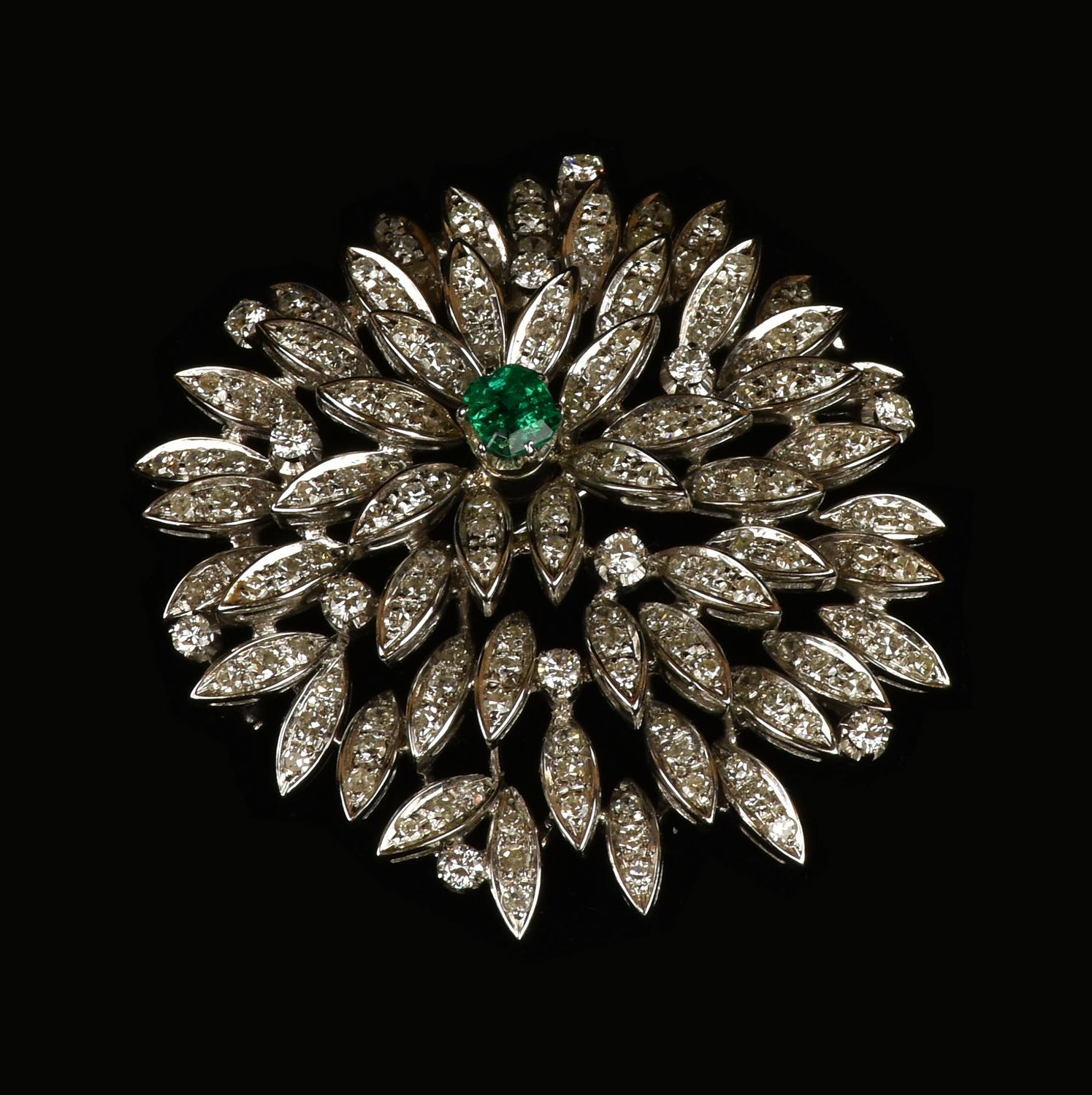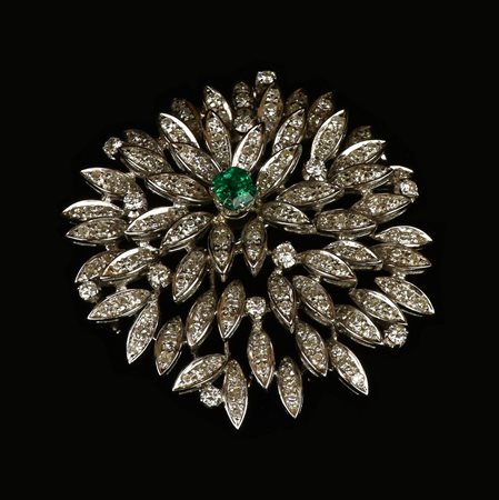 SPILLA IN ORO BIANCO, DIAMANTI E SMERALDO importante spilla con smeraldo...