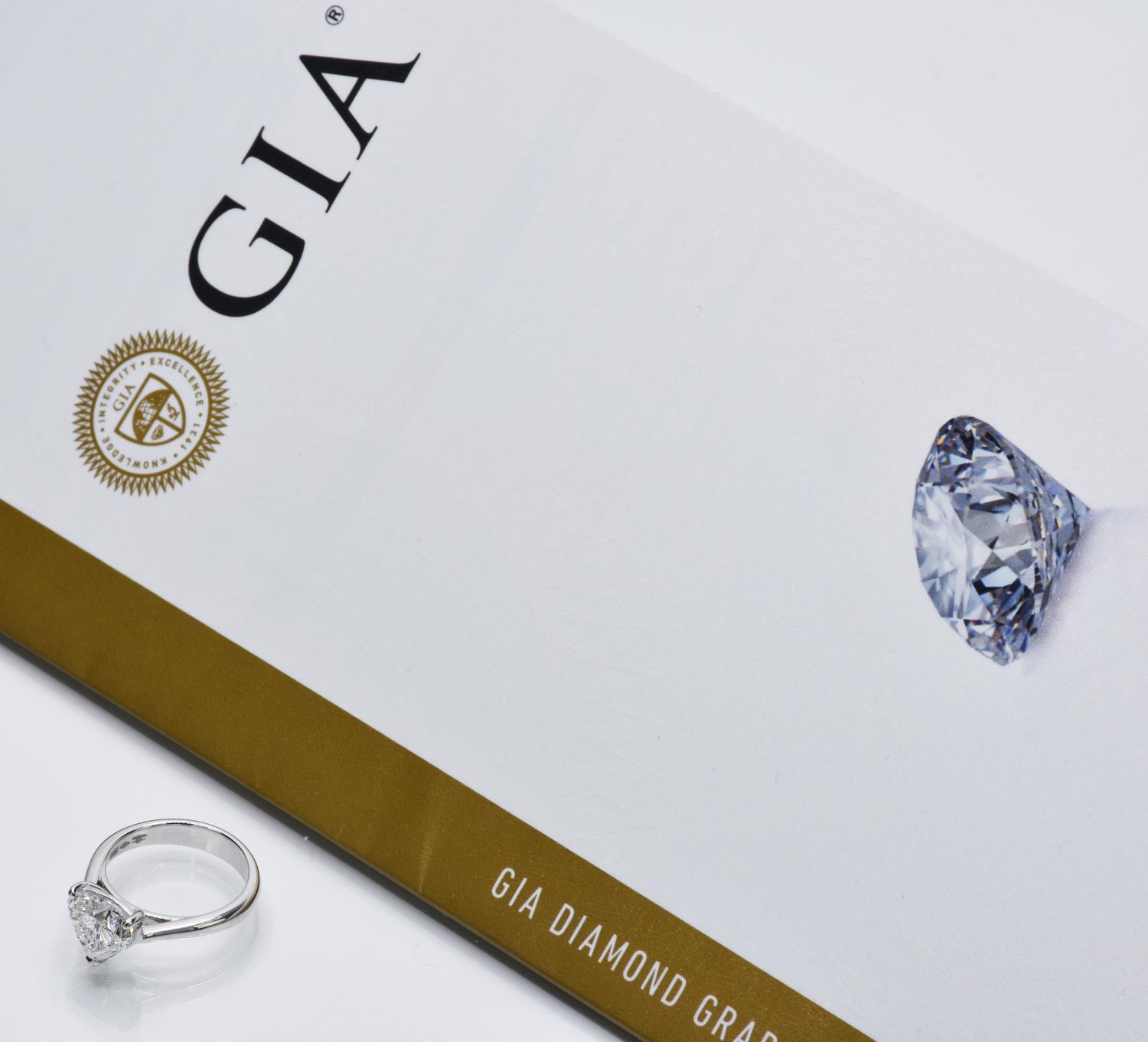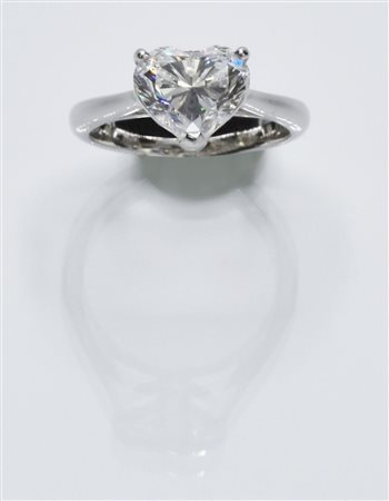 Anello in oro bianco 18K con diamante naturale taglio brillante a cuore. Peso 2.2 ct. Colore F. Purezza VS2. Fluorescenza: nessuna. Certificato GIA America del 16/02/2024: 2486591514. Misura 9 con possibilità di messa a misura. Peso: 4.1 gr.