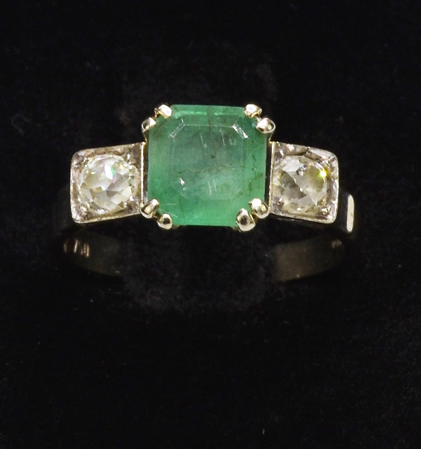 ANTIQUE RING WITH EMERALD AND DIAMONDS