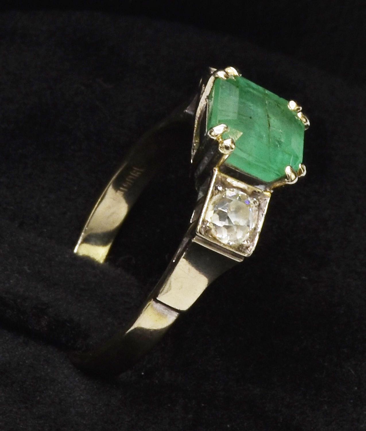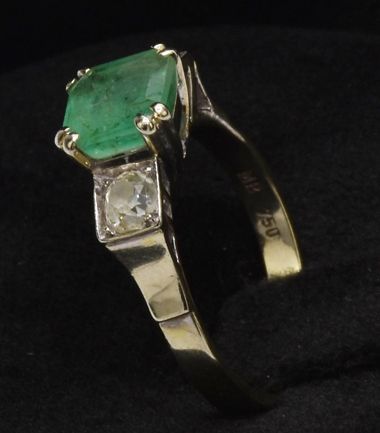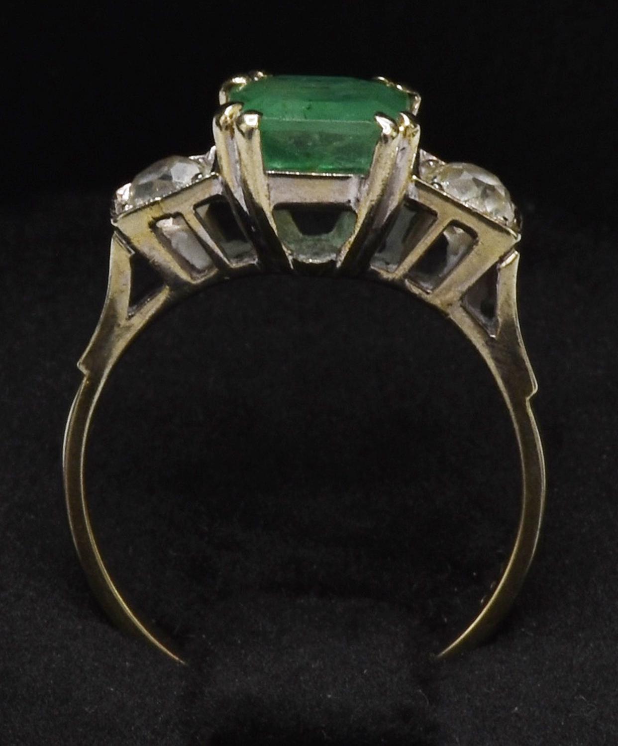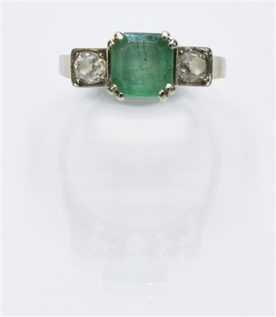 ANTIQUE RING WITH EMERALD AND DIAMONDS 18K champagne white gold ring...