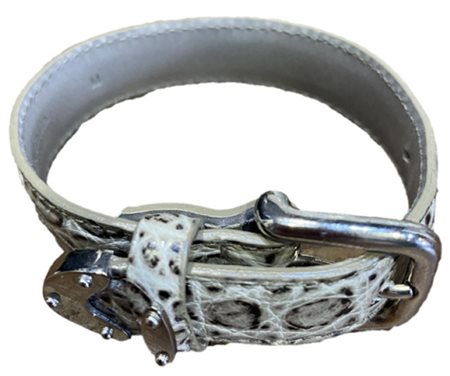 Bracciale Bottega Veneta in pelle stampa rettile color beige/nero