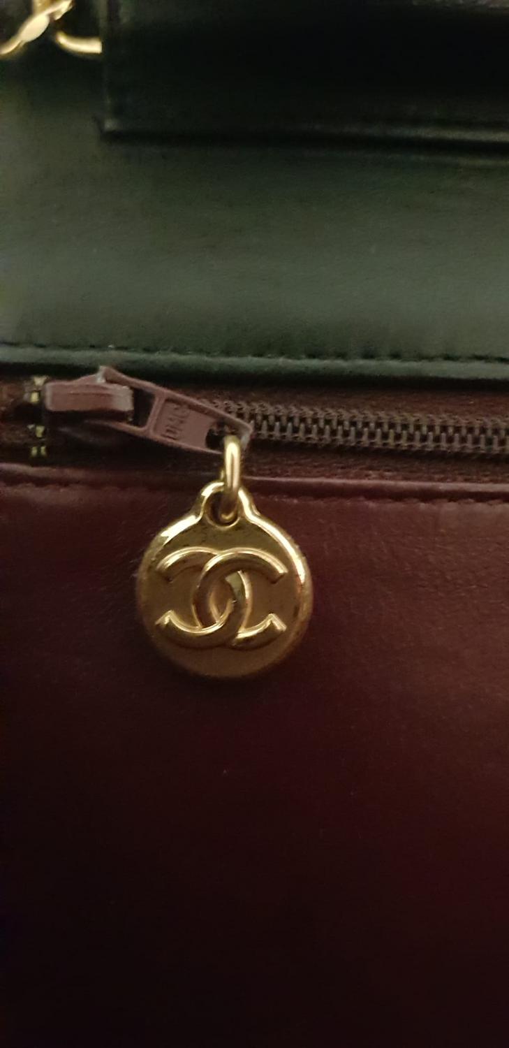 Timeless Chanel bag in black quilted calf leather, with chain shoulder strap. Single flap, closure with snap button. Bordeaux interior with a side zipper pocket. Gold-tone metal hardware. Comes with original dustbag. Dimensions: 22x17x5 cm. Made in France. Small imperfections due to use, but overall in very good condition. Well preserved.