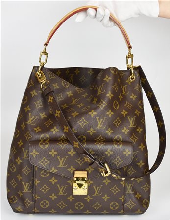Borsa a spalla modello Metis Hobo in canvas monogram e finiture in vacchetta. Presenta un singolo manico in vacchetta e una tracolla regolabile e rimovibile in canvas. Interno organizzato in un unico vano e tre taschini laterali, uno con cerniera e due piatti. All’esterno reco una tasca frontale con patta e chiusura a scatto. Hardware in metallo dorato. Cm 31,00x34,50x11,50. Altezza coi manici cm 50,00. Corredata di dustbag, scatola e ricevuta di pagamento. Codice riferimento prodotto FL3103. Prodotto in Francia. Qualche segno d’uso sulla vacchetta non compromette le ottime condizioni generali. Ben conservata.