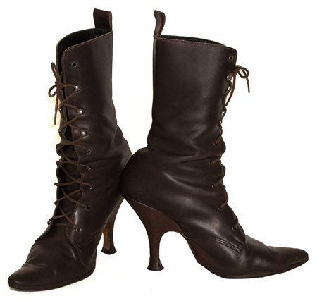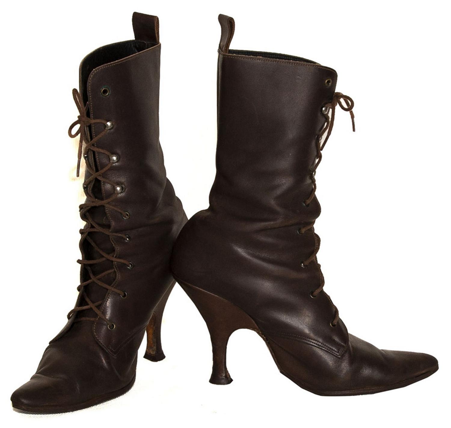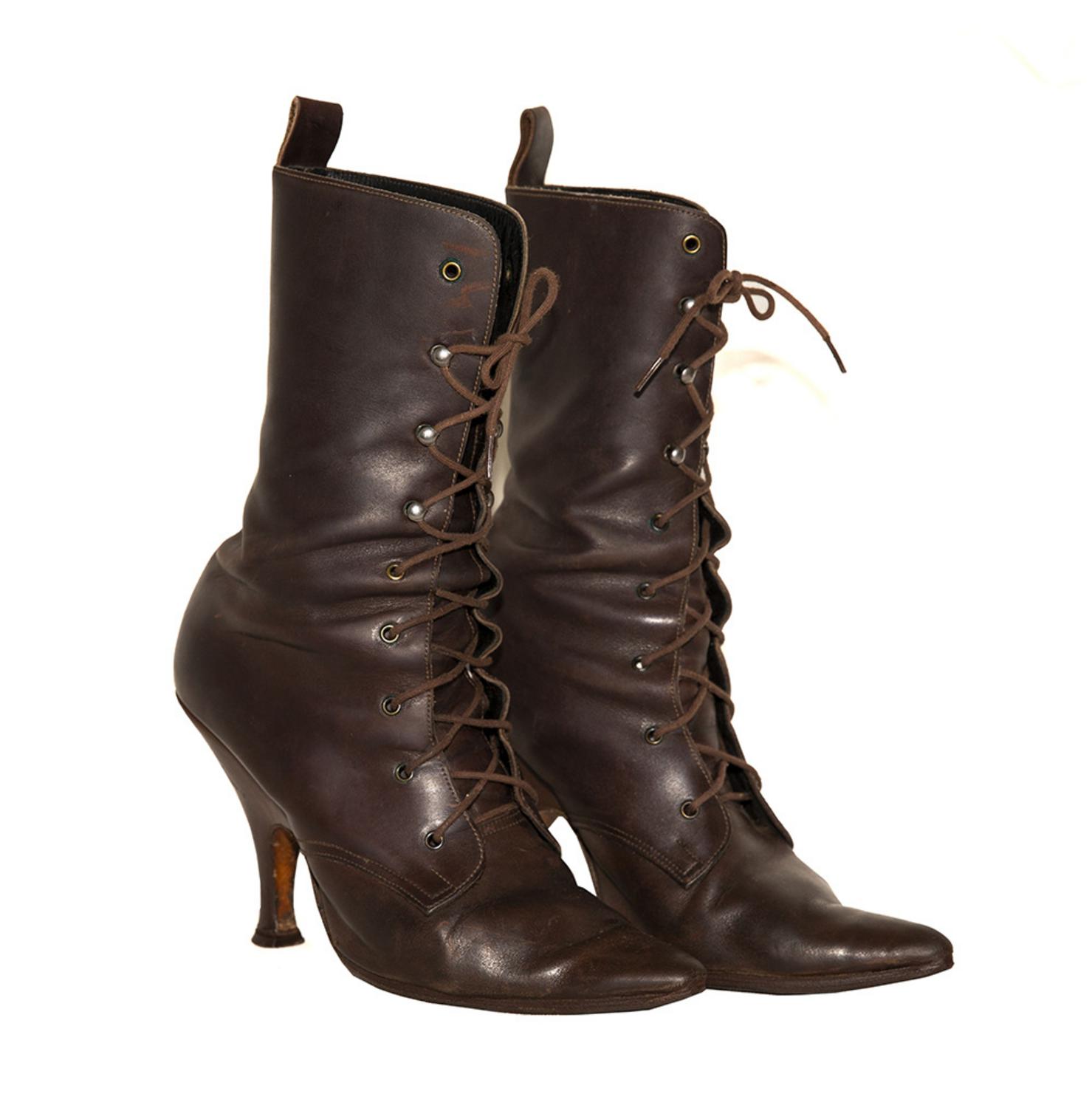 ankle boot with laces in dark brown leather. Rare mid-80s model. Made in England, size 39. Heel 11. Boot height 31 cm. As the product no longer bears the branding, a letter of product authenticity from Vivienne Westwood Brand is provided upon request.