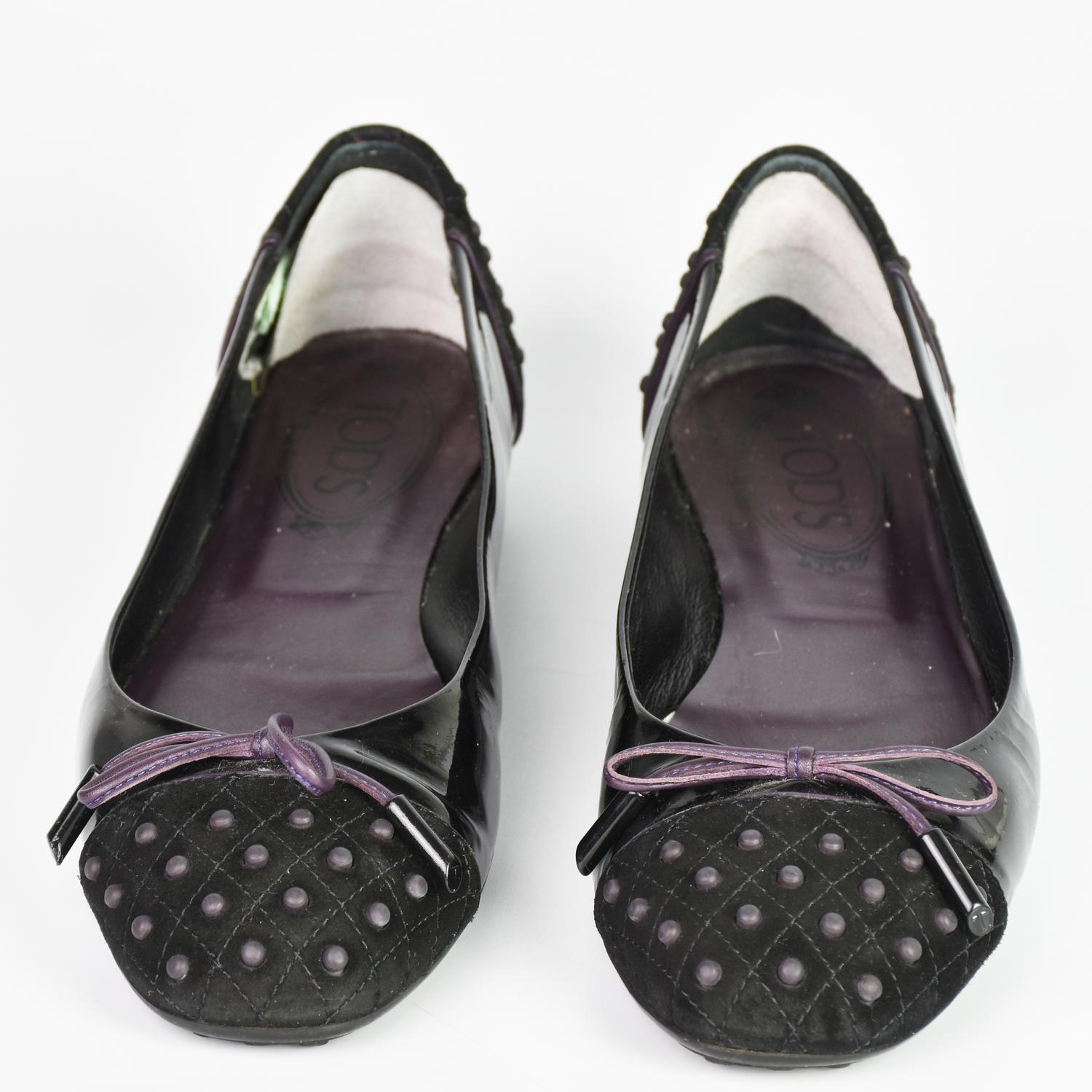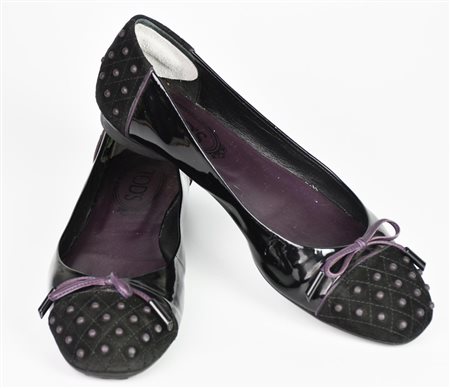 Tod’s BALLET FLATS DESCRIPTION: Black patent leather ballerina flats with...