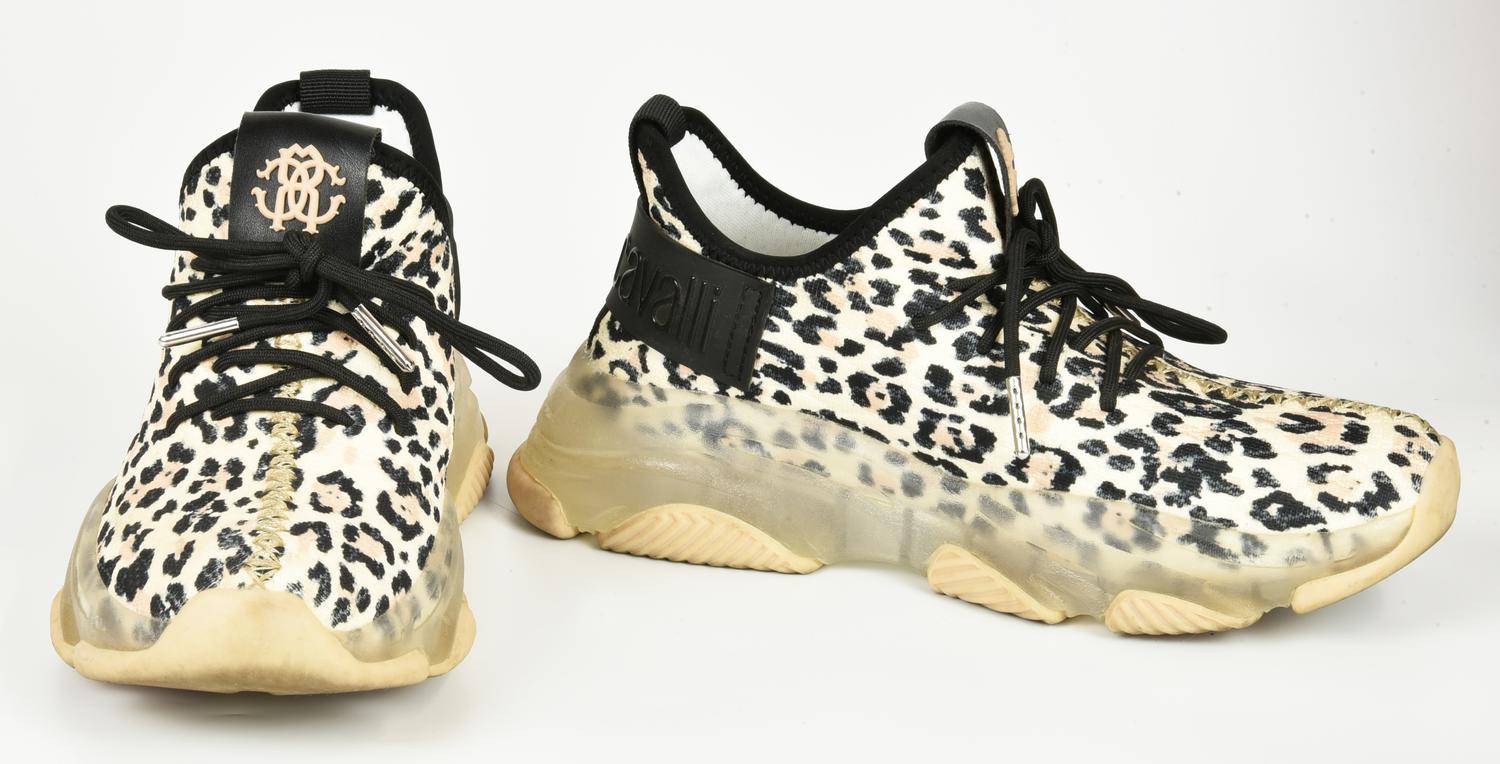 Roberto Cavalli SNEAKERS DESCRIPTION: Leopard-print fabric sneakers with...