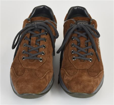 Sneakers in suede con interni in pelle e suola in gomma. Logo metallico applicato sul lato. Manca indicazione di taglia, veste una 37,5 IT. Prodotte in Vietnam. Ben conservate.