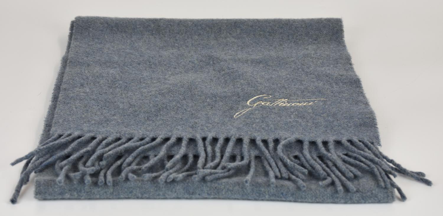 Scarf, likely in wool, with fringes. Dimensions: 134.00 x 29.50 cm. Composition label is missing. Perfectly preserved.