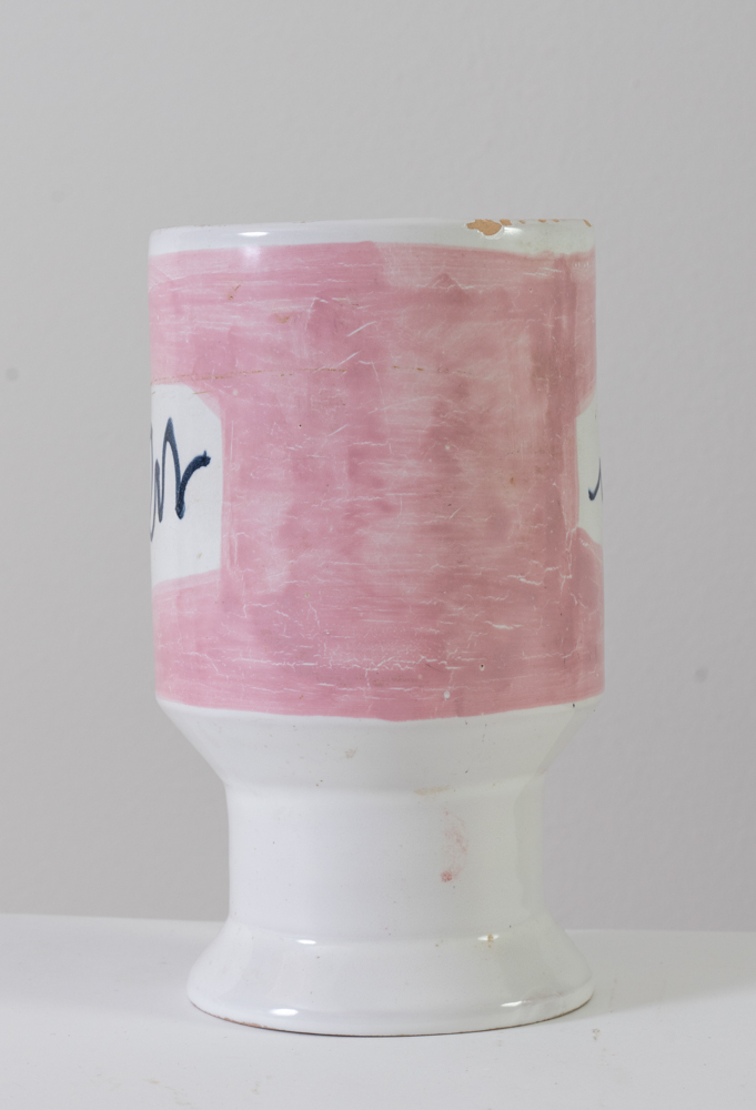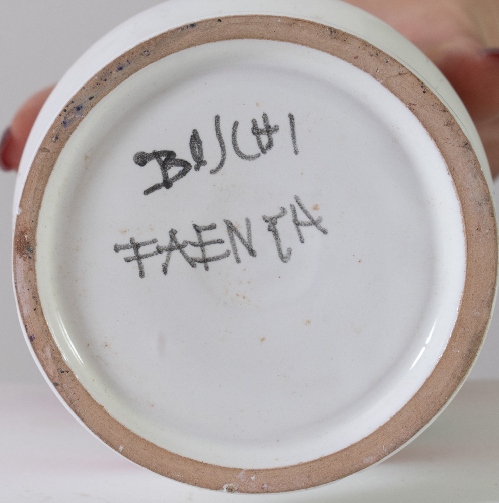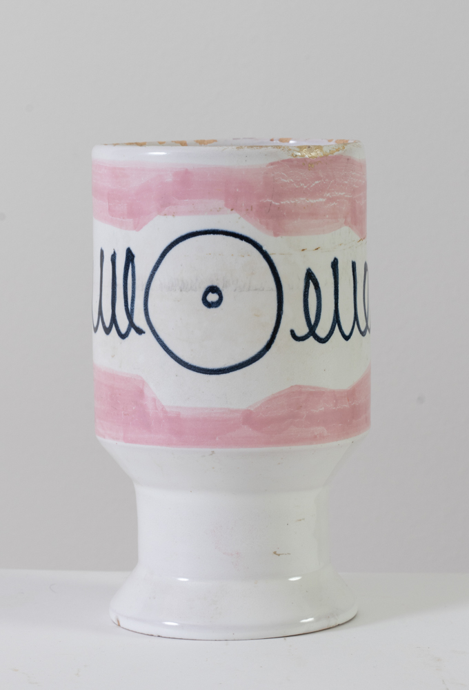 Boschi, Faenza, seconda metà del XX secolo. Vaso in ceramica smaltata nei toni del bianco e del rosa, con decorazione informale. Difetti.