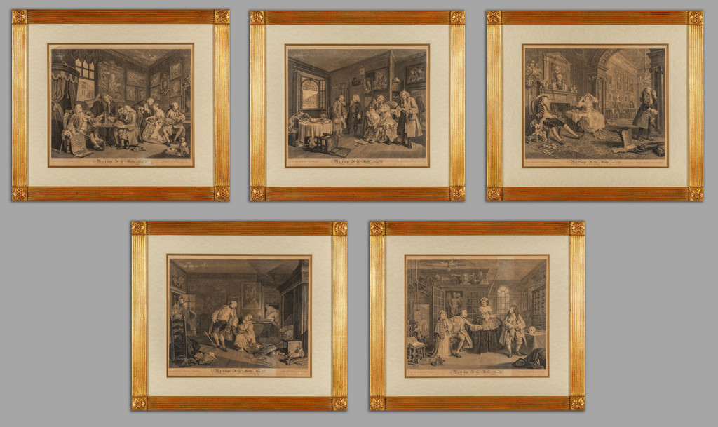 Cinque stampe francesi a soggetto di matrimonio d.te 1745