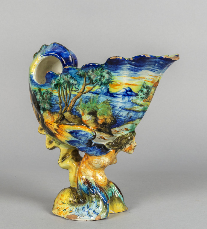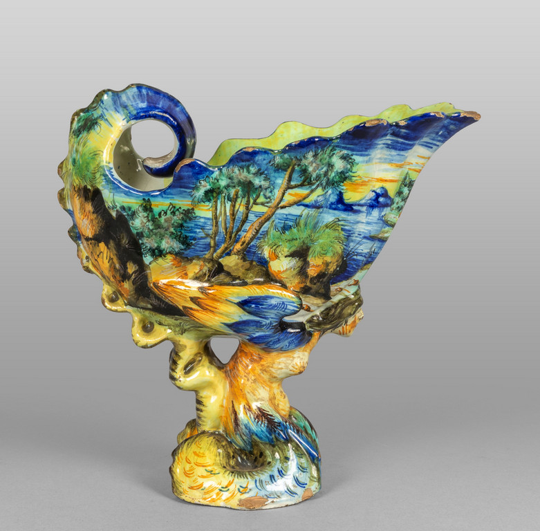Coppa in maiolica policroma raffigurante sirena con conchiglia sec.XIX
