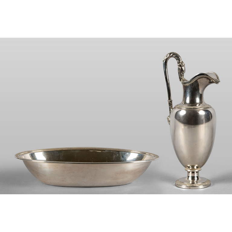 Acquamanile in argento sbalzato punzone di Giuseppe Balbino denari 11 contrassaggiatore Giuseppe vernoni Torino 1814-1824