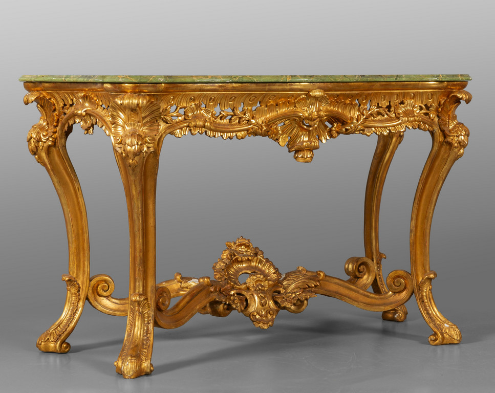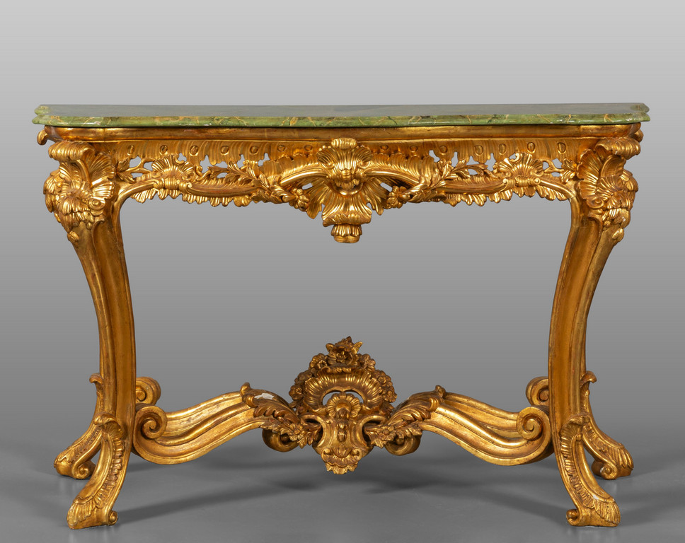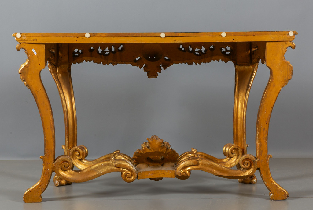 Console Luigi Filippo in legno intagliato e dorato piano laccato a finto marmo sec.XIX