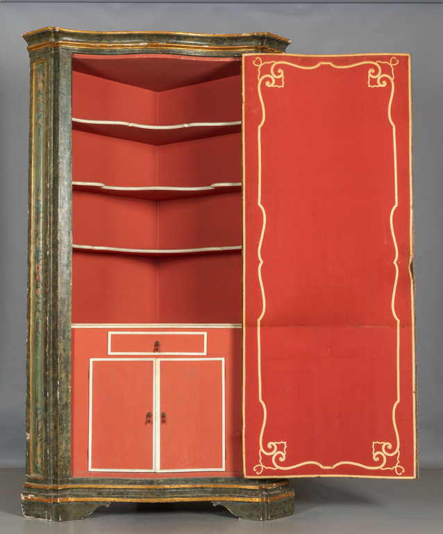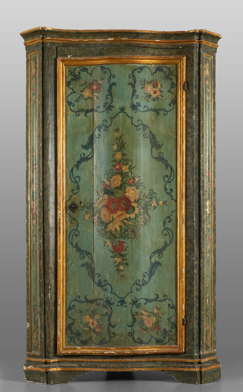 Grande cantonale Luigi XIV ad uno sportello in legno intagliato e laccato Piemonte sec.XVIII