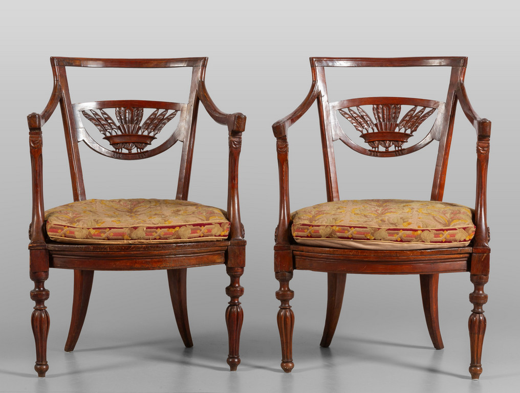 Coppia di poltrone Carlo X schienale traforato con intaglio a spiga Toscana I metà sec.XIX