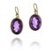 Orecchini in oro giallo a monachella due grandi quarzi ametista taglio ovale pendono solitari.