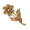 Spilla in oro giallo a forma di fiore dalla superficie corrugata al centro piccolo diamante taglio brillante di ct. 0 09 ca.
