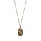 Ciondolo Liberty pendente di forma ovale con figura femminile in oro giallo smalti plique-à-jour e piccolo diamante su bouquet di fiori.